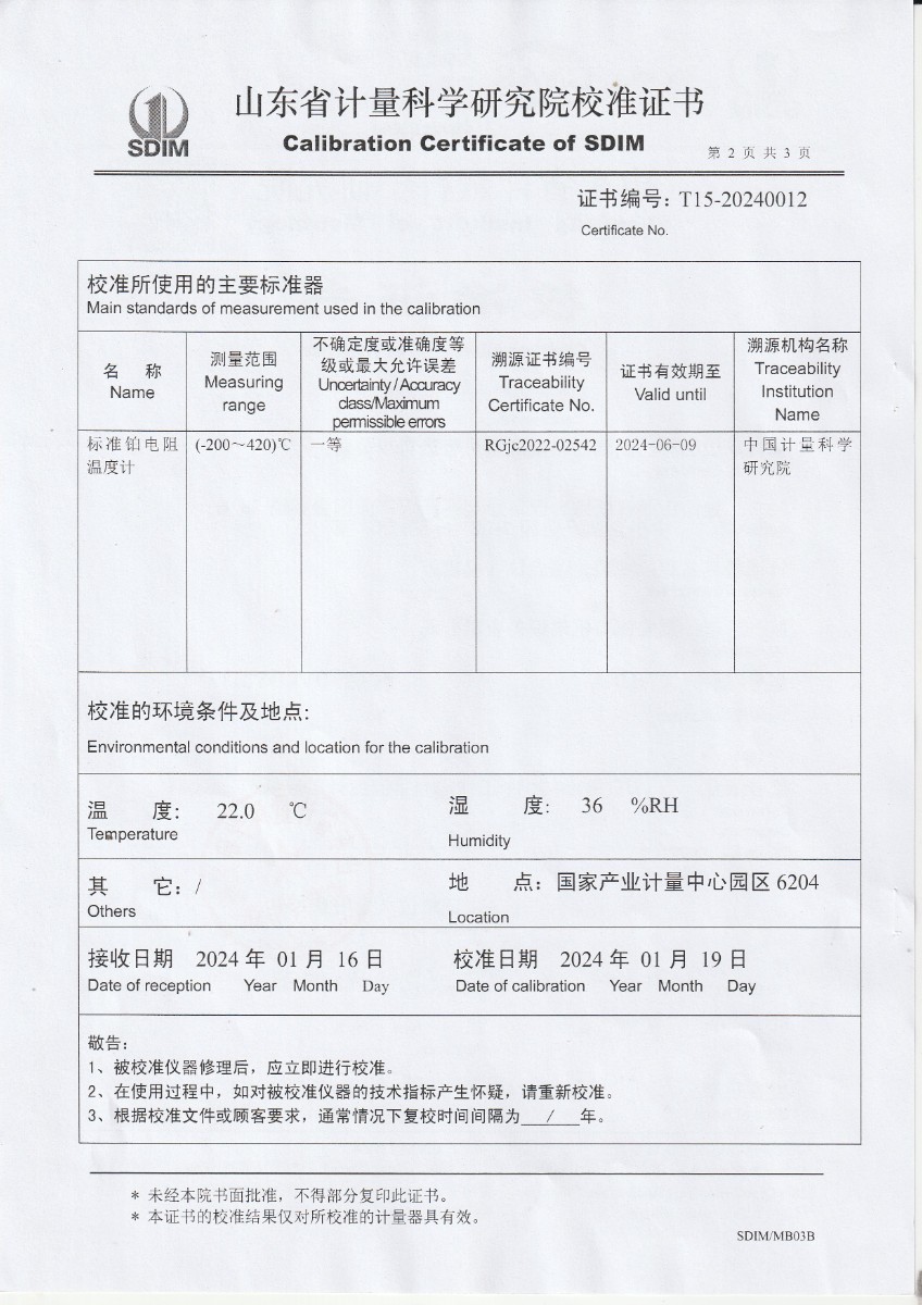 冷鏡式露點儀校準證書 2024-1-31 本文被閱讀 8690 次