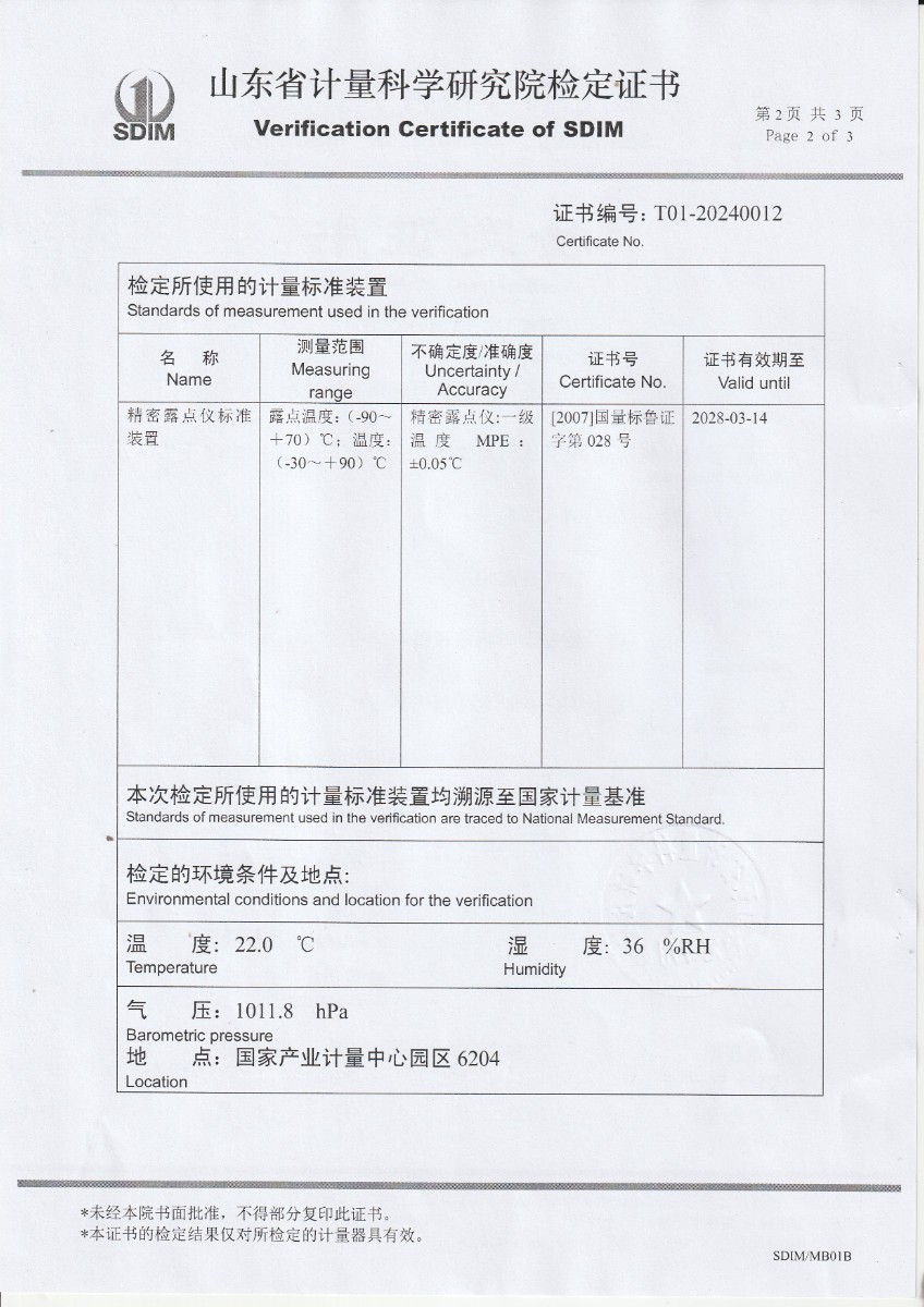 冷鏡式露點(diǎn)儀檢定證書 2024-1-31 本文被閱讀 8388 次