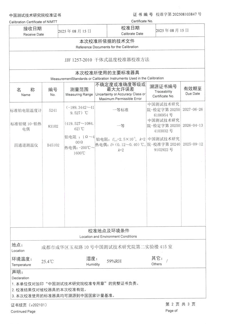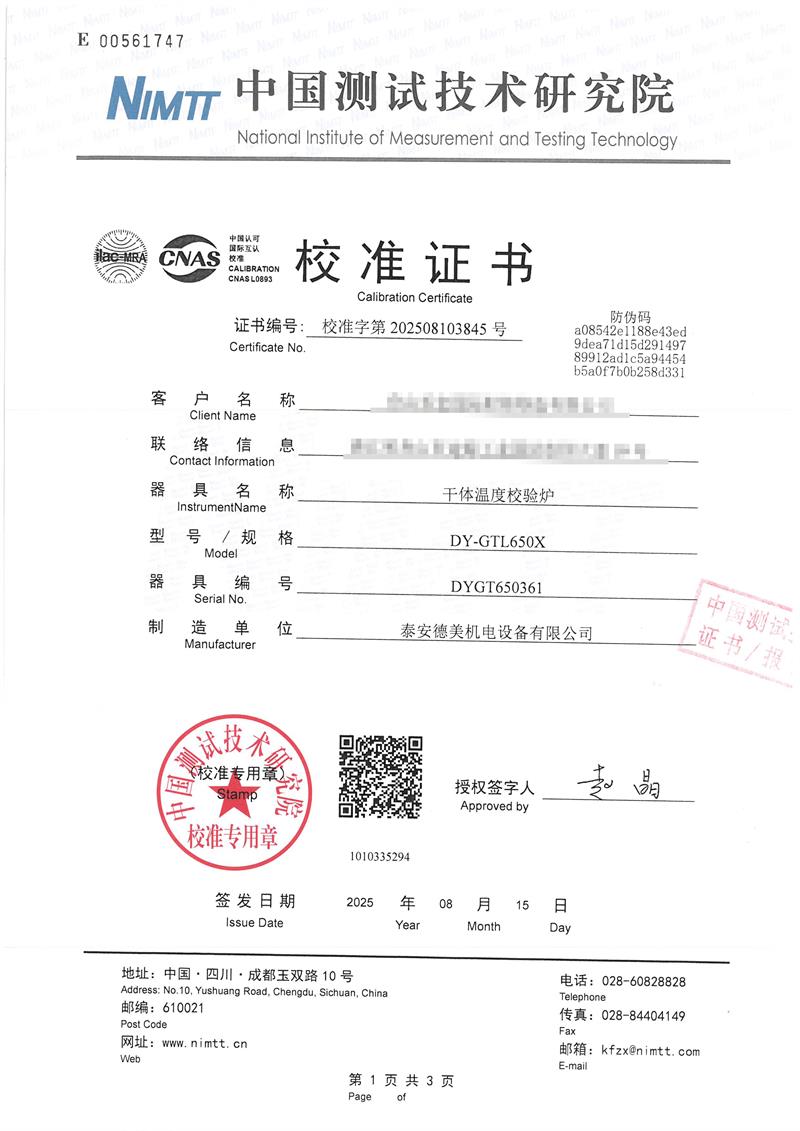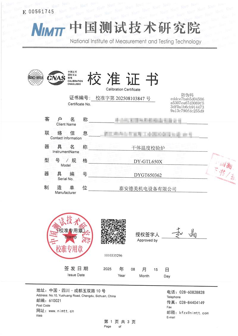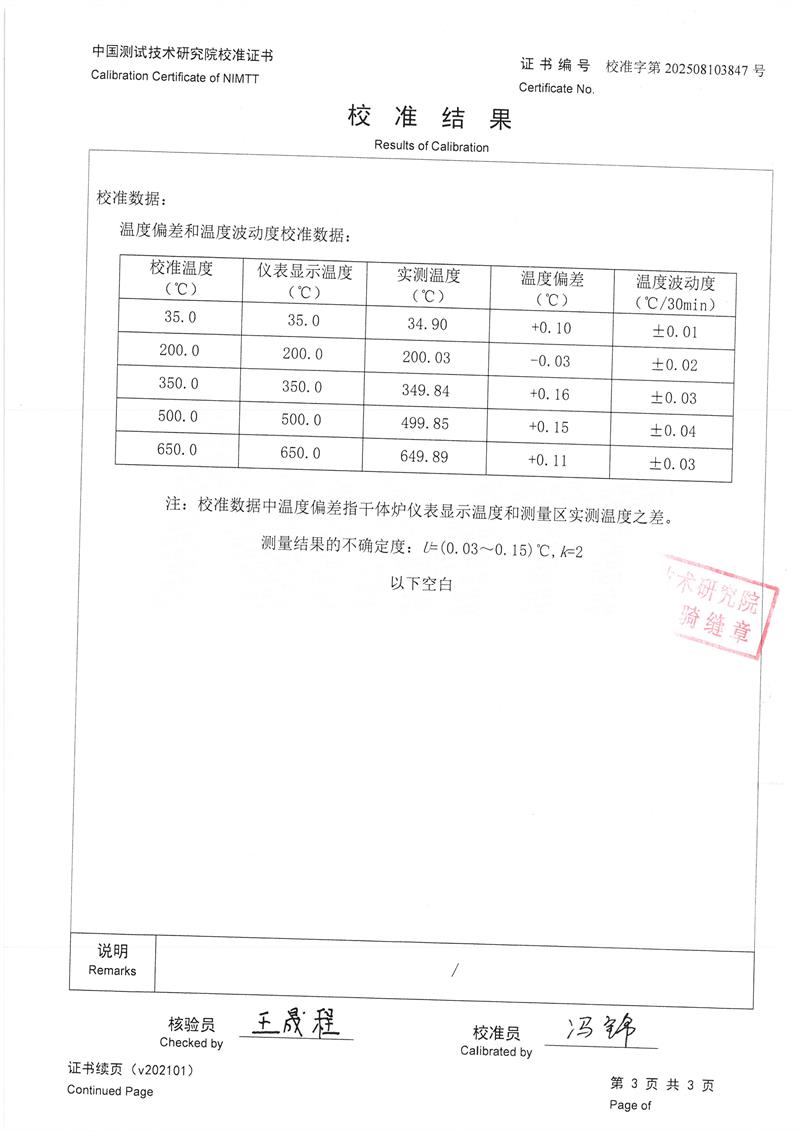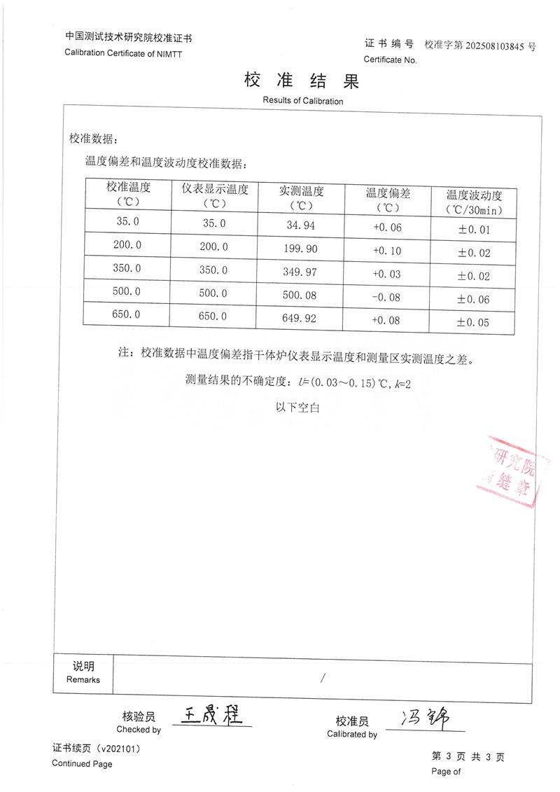 干體爐(室溫+5℃~650℃)校準(zhǔn)證書(shū) 2025-8-20 本文被閱讀 1901 次