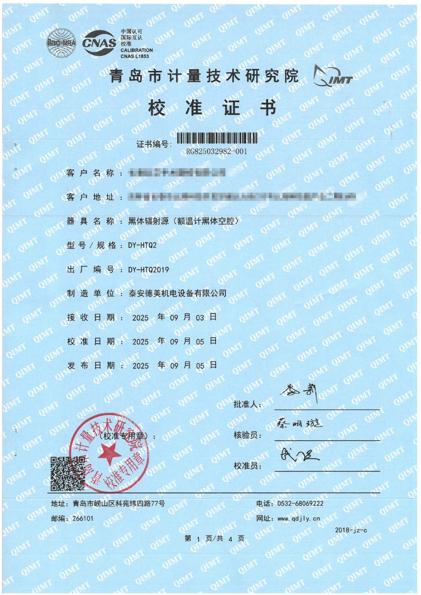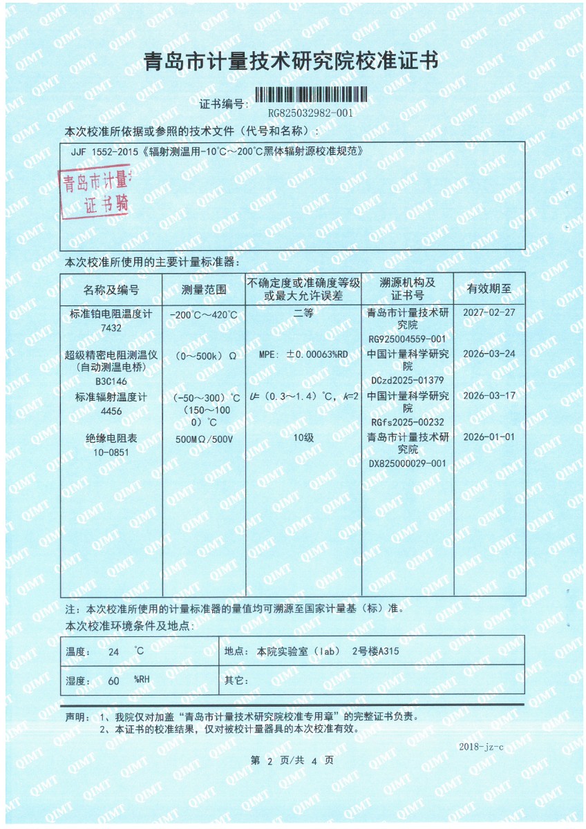 額溫計黑體空腔-校準證書 2025-9-23 本文被閱讀 1160 次