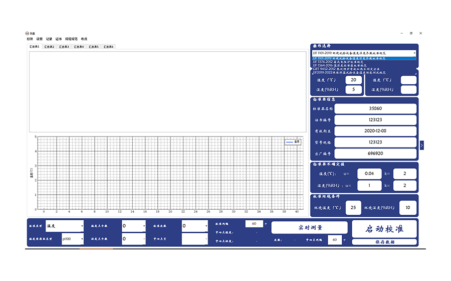 4)根據(jù)數(shù)據(jù)表格中的數(shù)據(jù),生成相對(duì)應(yīng)的記錄表信息跟證書(shū)信息。可生成實(shí)時(shí)曲線。