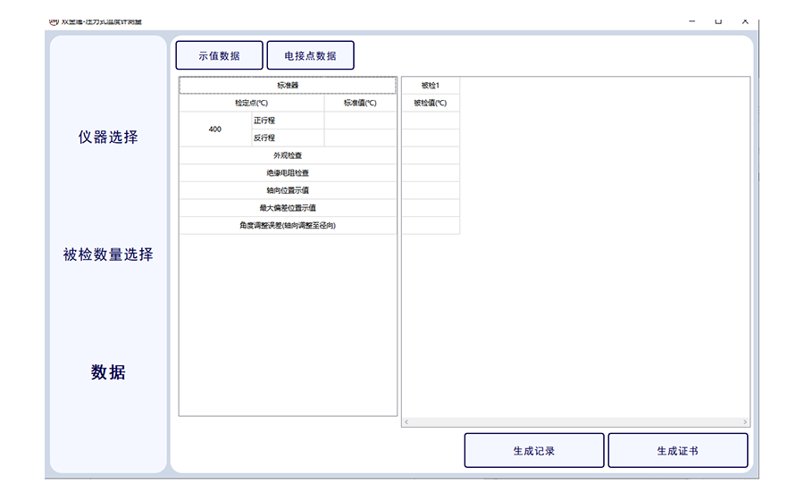 3.軟件可通過被測傳感器數據,實現(xiàn)數據的記錄與證書生成