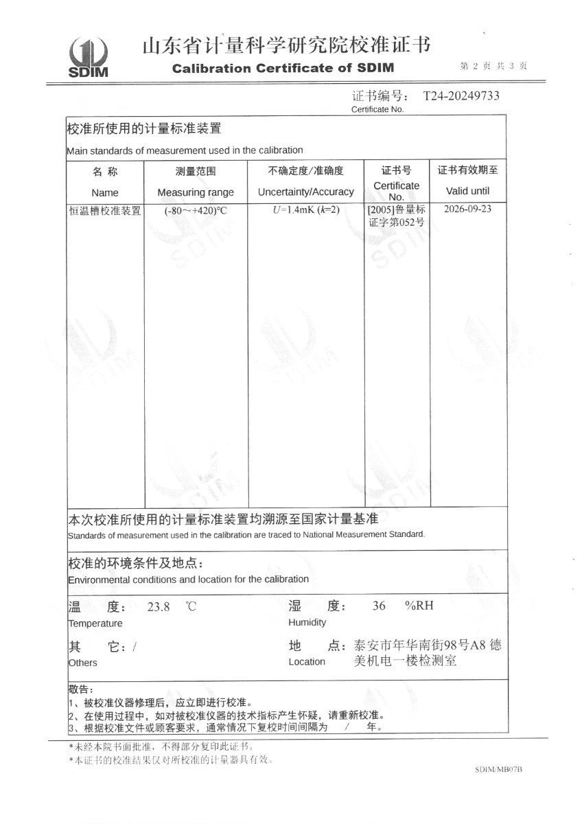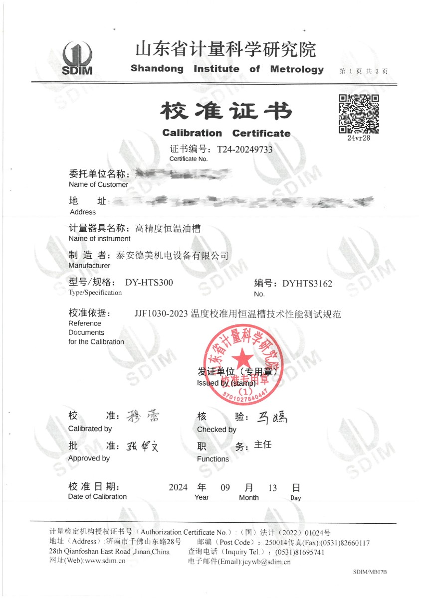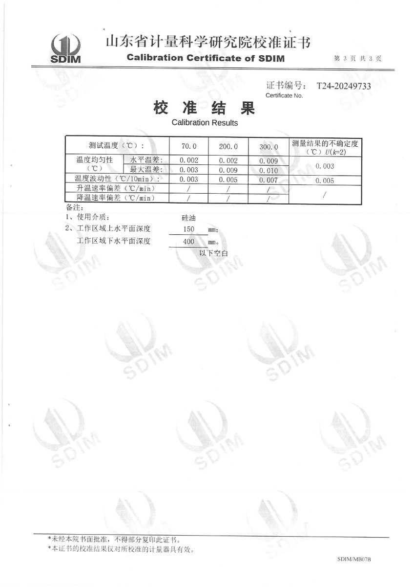 高精度恒溫油槽(70~300)℃校準證書 2024-9-25 本文被閱讀 6545 次