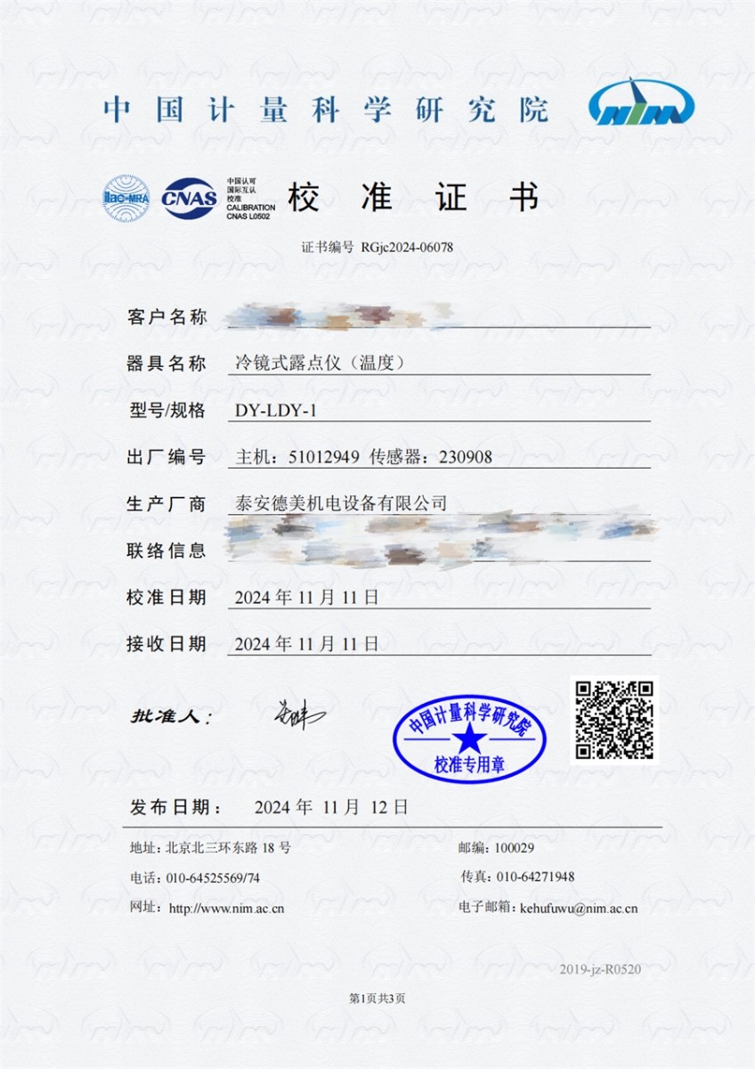 冷鏡式露點儀校準證書 2024-11-21 本文被閱讀 6974 次