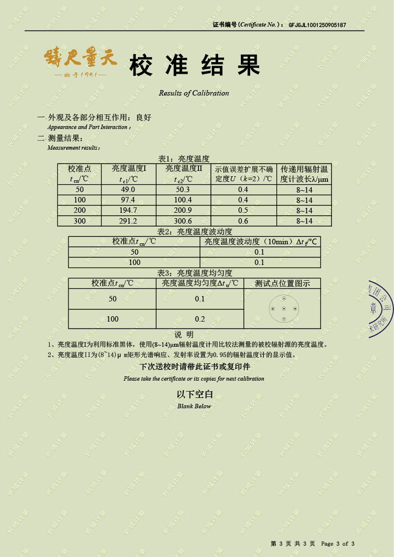 分體式面源黑體輻射源(室溫+5-300℃)校準(zhǔn)證書 2025-9-12 本文被閱讀 1091 次