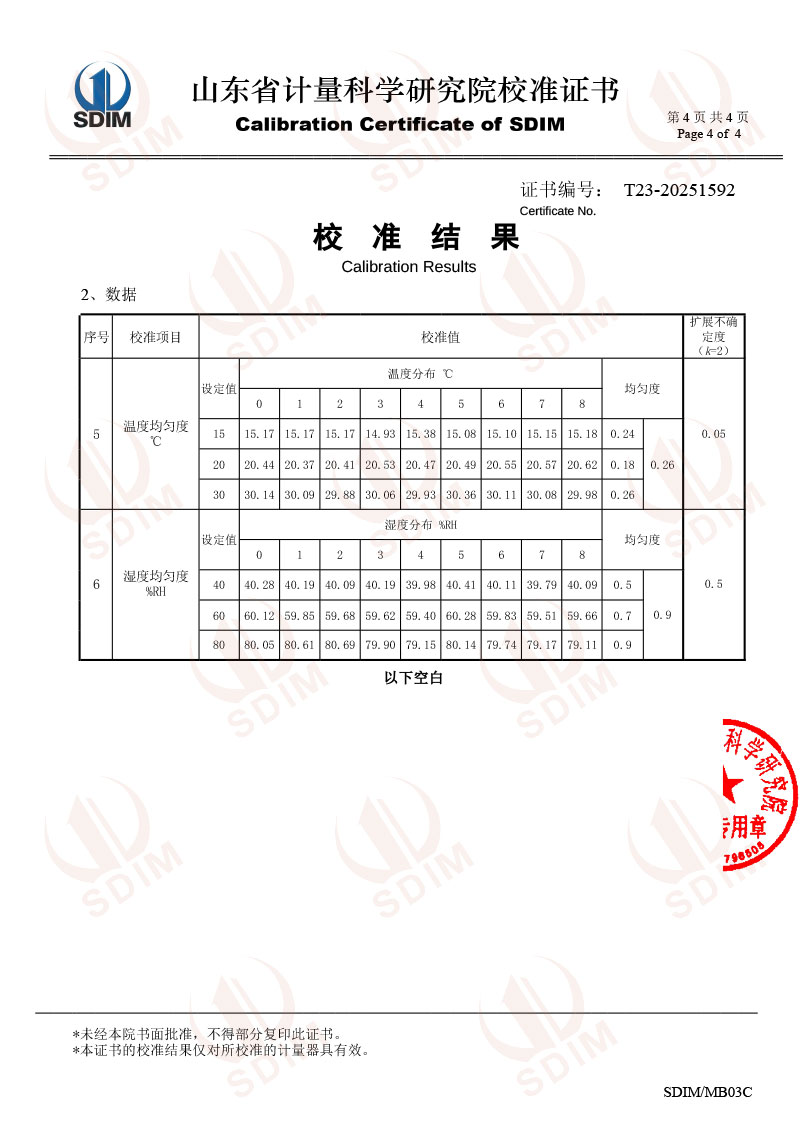 溫濕度檢定箱(-20-70℃)校準(zhǔn)證書(shū)