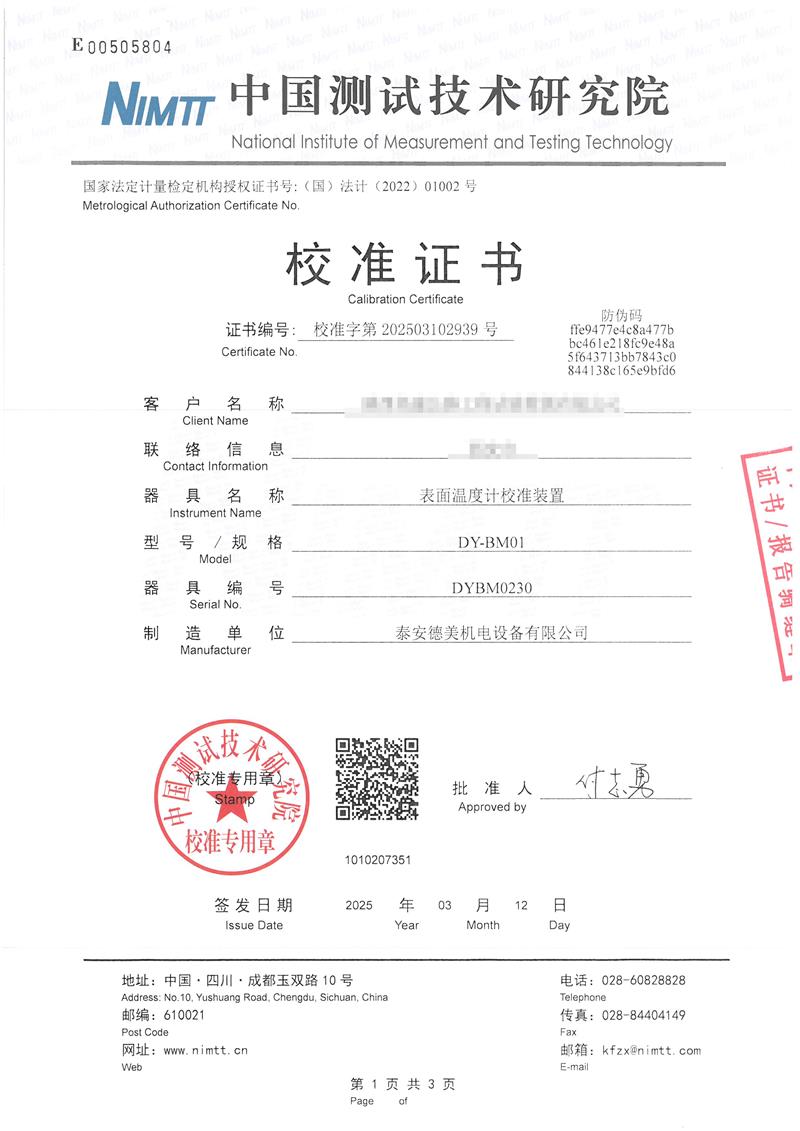 上一條:DY-BM02型表面溫度計校驗爐 | 下一條:超低溫面源黑體爐(-40-80℃)校準證書 |