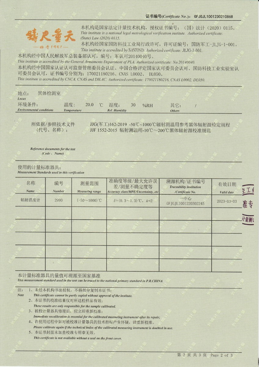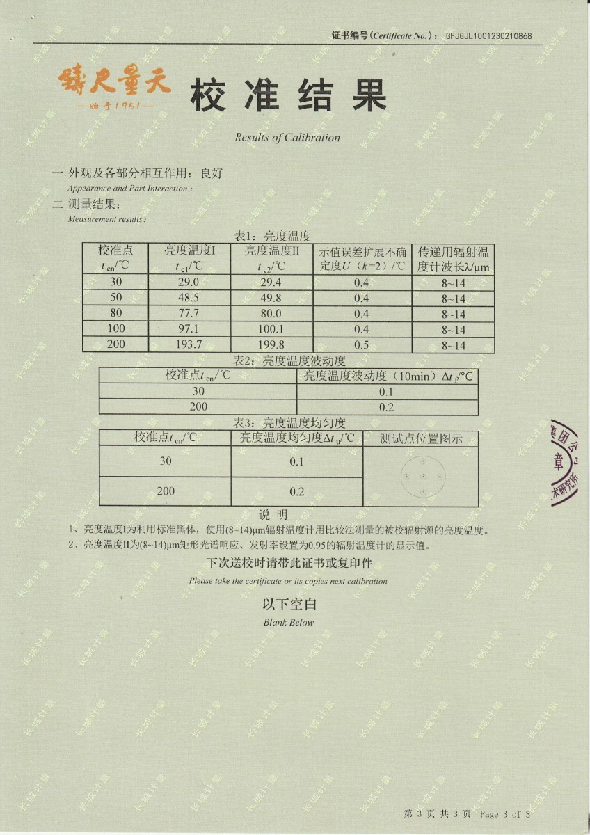 | 上一條:西安和其光電科技股份有限公司 低溫浴式黑體輻射源 校準(zhǔn)證書 | 下一條:DY-HT2MF-800大面源黑體爐 |