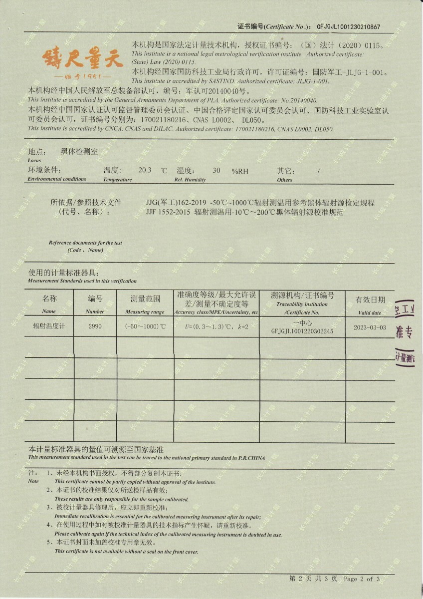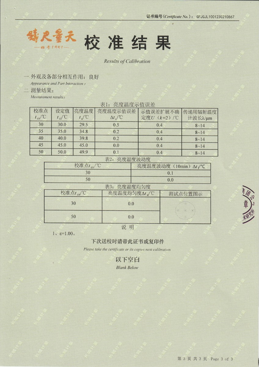 | 上一條:江蘇省產(chǎn)品質(zhì)量監(jiān)督檢驗(yàn)研究院 黑體輻射源 校準(zhǔn)證書 | 下一條:便攜式干體爐(-30-150℃)校準(zhǔn)證書 |