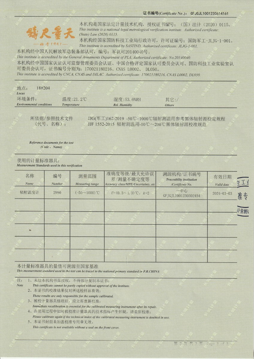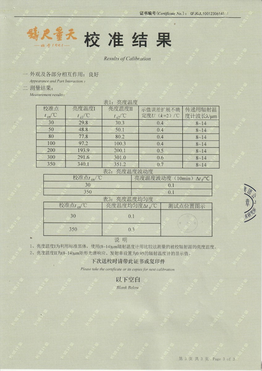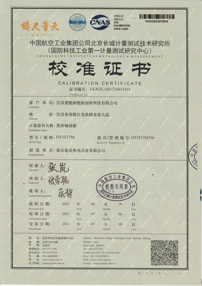 上一條:孝感楚能新能源創(chuàng)新科技有限公司-黑體輻射源 | 下一條:超低溫面源黑體爐(-40-80℃)校準(zhǔn)證書 |