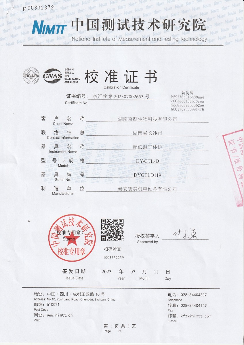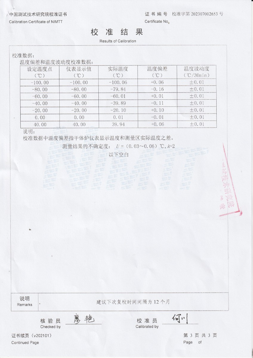 上一條:宜昌楚能新能源創(chuàng)新科技有限公司-黑體輻射源 | 下一條:超低溫面源黑體爐(-40-80℃)校準(zhǔn)證書 |