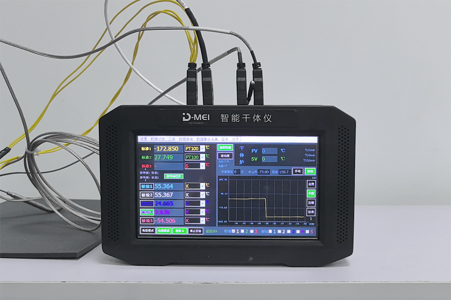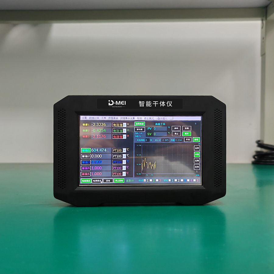 DY-CTRE100智能干體儀是公司對于各種低、中、高溫干體爐校準溫度傳感器設計,智能干體儀可同時采集3支標準鉑電阻溫度計(Pt25)或1支標準熱電偶溫度計以及5支被檢溫度傳感器的溫度值、電阻值及波動曲線,通道采集方式為巡檢,也可以手動切換通道。設備可切換電阻模式、電偶模式。設備可配套干體爐、標準傳感器、備檢傳感器,配備可實現(xiàn)小型上位機設置,實時控制干體爐溫度設置、被檢標準器、被檢傳感器當前溫度值、電阻值、波動度曲線。