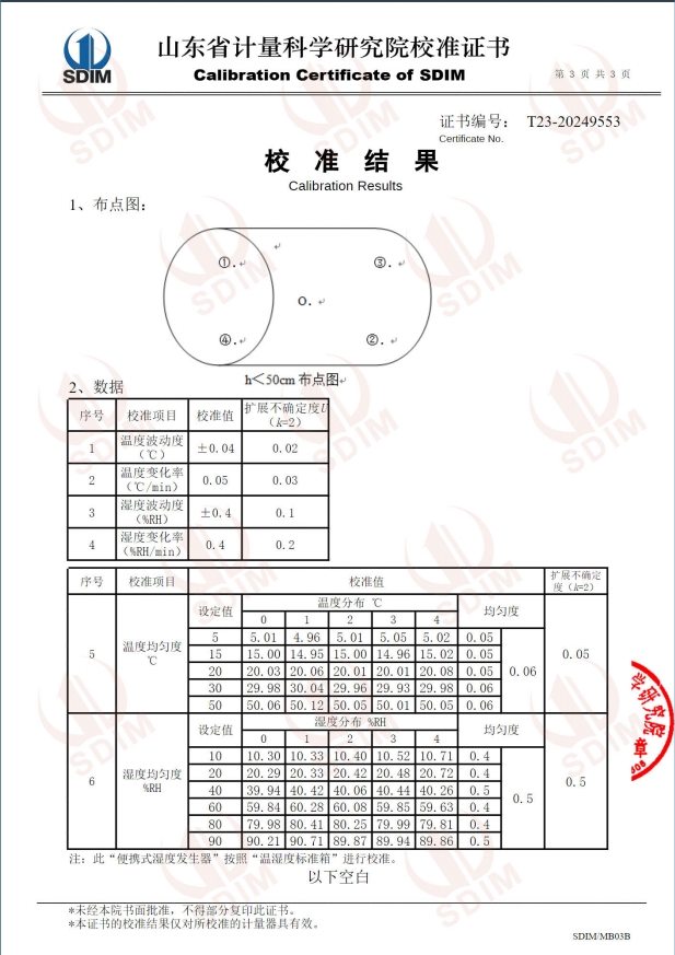 便攜式濕度發(fā)生器(5~50℃)校準證書