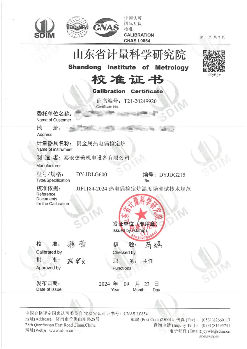 上一條:額溫計(jì)黑體空腔校準(zhǔn)證書(shū) | 下一條:超低溫面源黑體爐(-40-80℃)校準(zhǔn)證書(shū) |