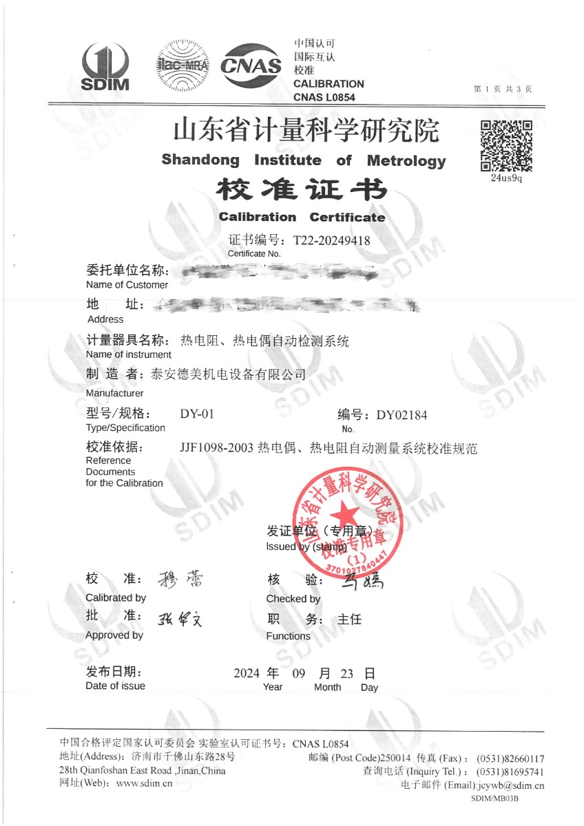 上一條:貴金屬熱電偶檢定爐(800~1600℃)校準(zhǔn)證書 | 下一條:超低溫面源黑體爐(-40-80℃)校準(zhǔn)證書 |