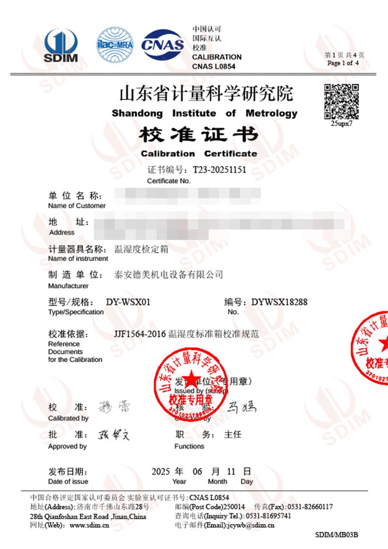 溫濕度檢定箱(-5-65℃)校準證書 2025-6-13 本文被閱讀 2485 次