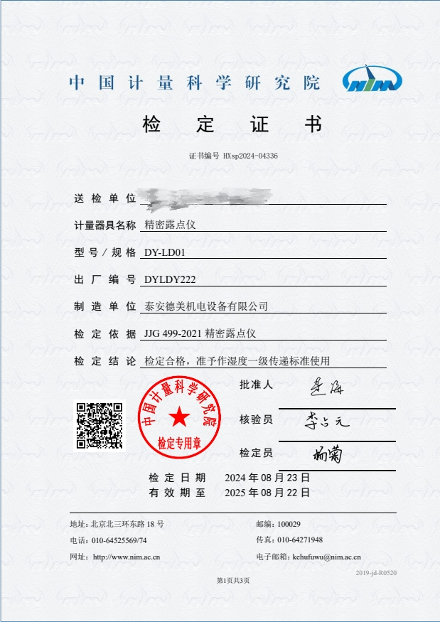 露點儀檢定證書 2024-9-3 本文被閱讀 5920 次