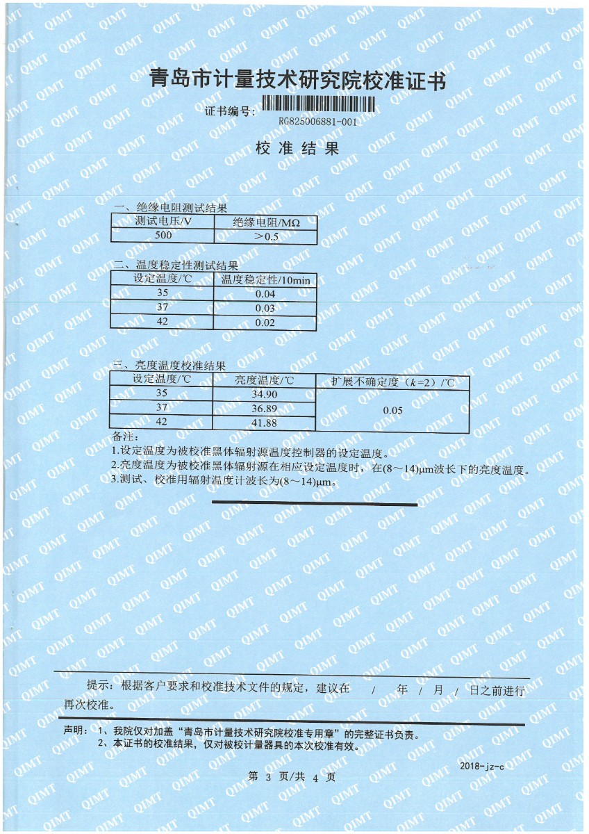 上一條:面源黑體爐(室溫+5-500℃)校準(zhǔn)證書 | 下一條:超低溫面源黑體爐(-40-80℃)校準(zhǔn)證書 |