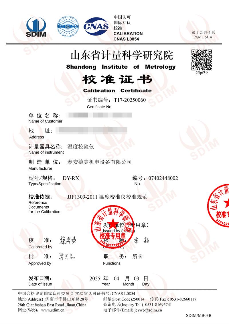 溫度校驗儀校準(zhǔn)證書 2025-4-7 本文被閱讀 2750 次