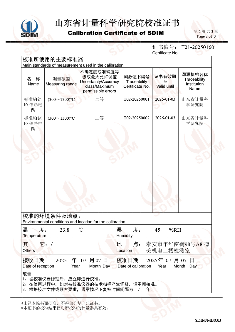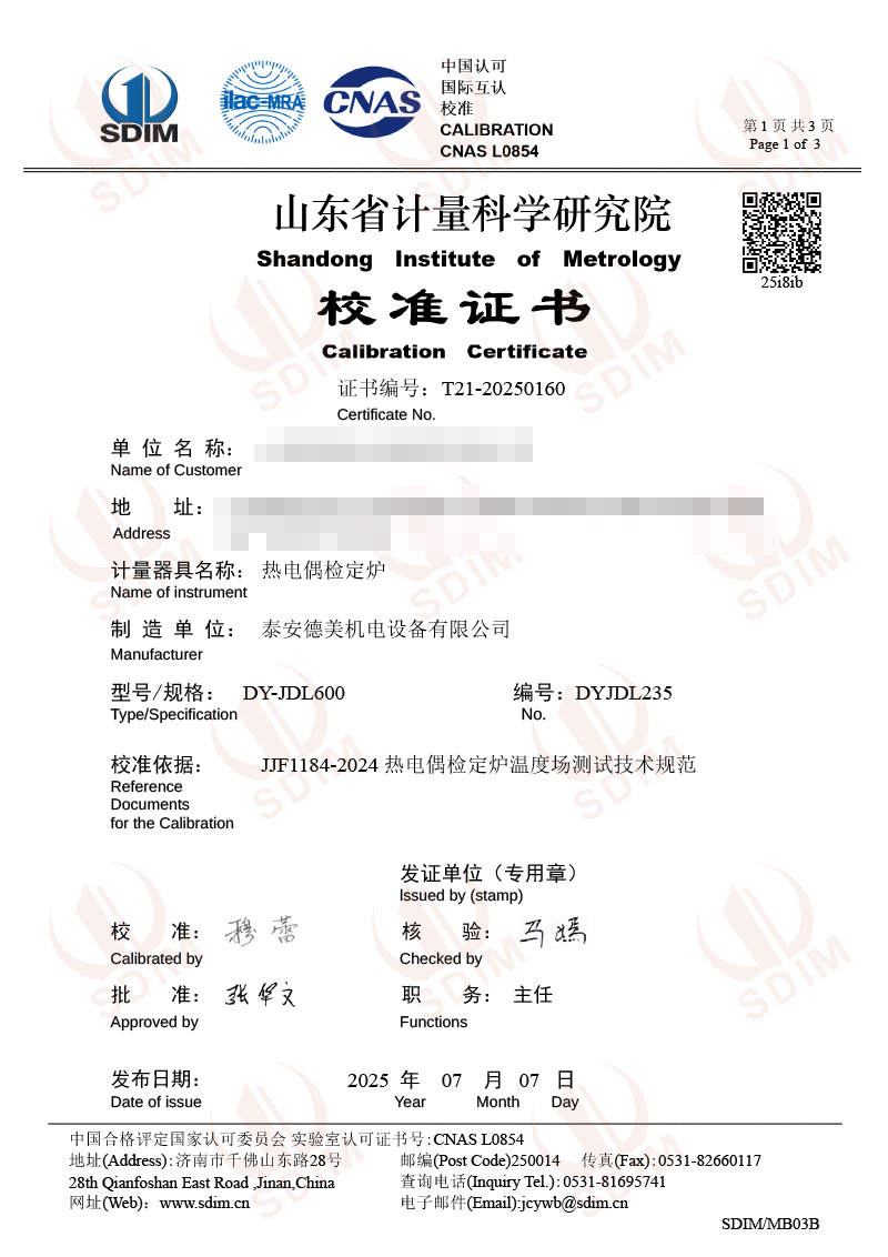 熱電偶檢定爐(300-1200℃)校準證書 2025-7-10 本文被閱讀 2490 次