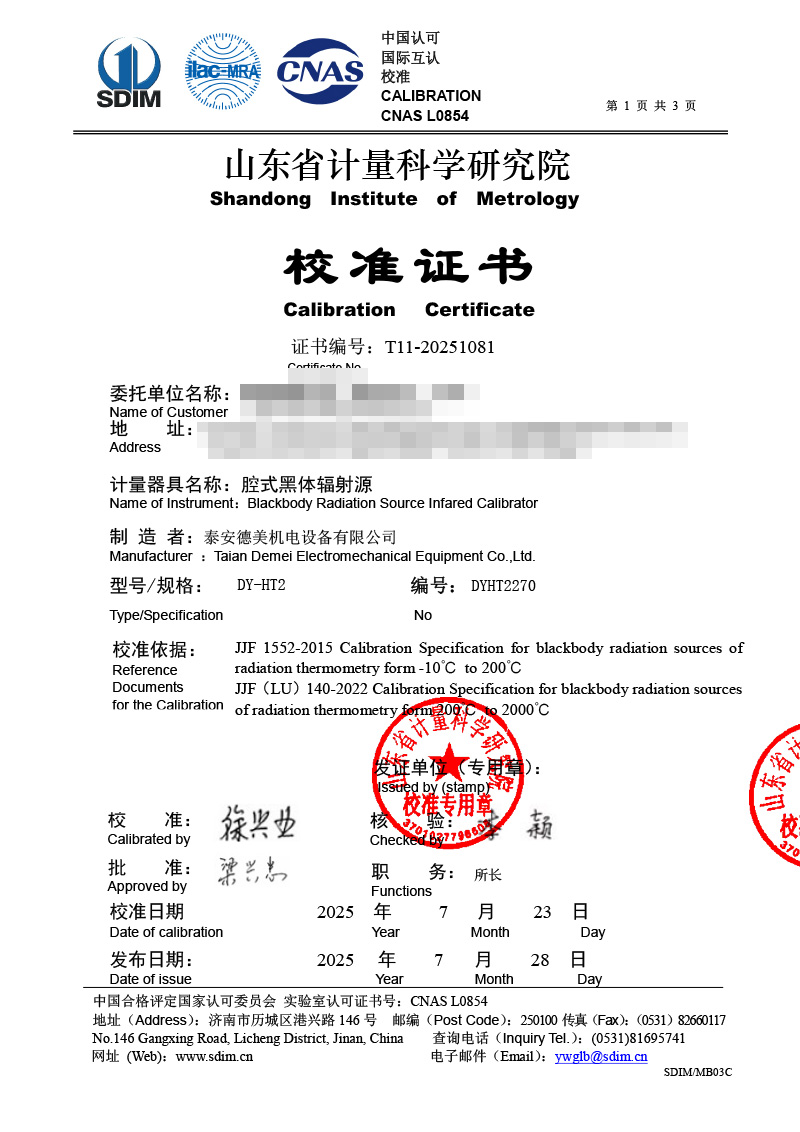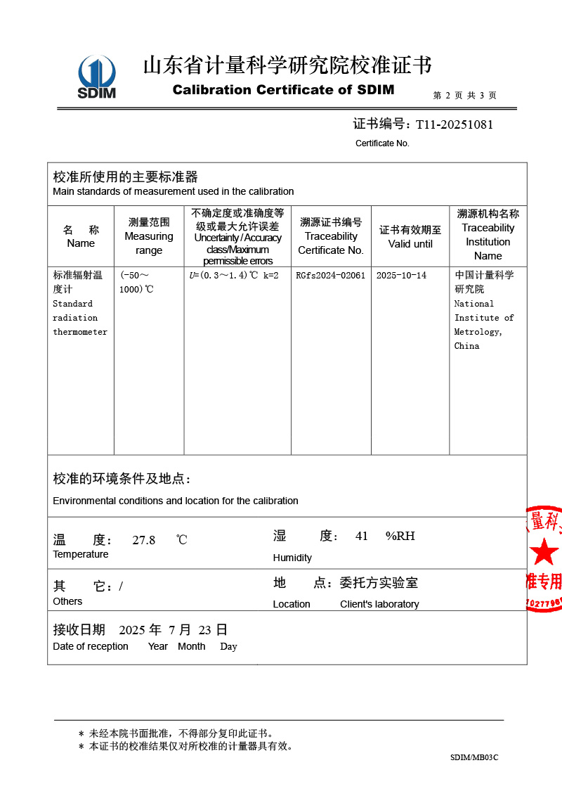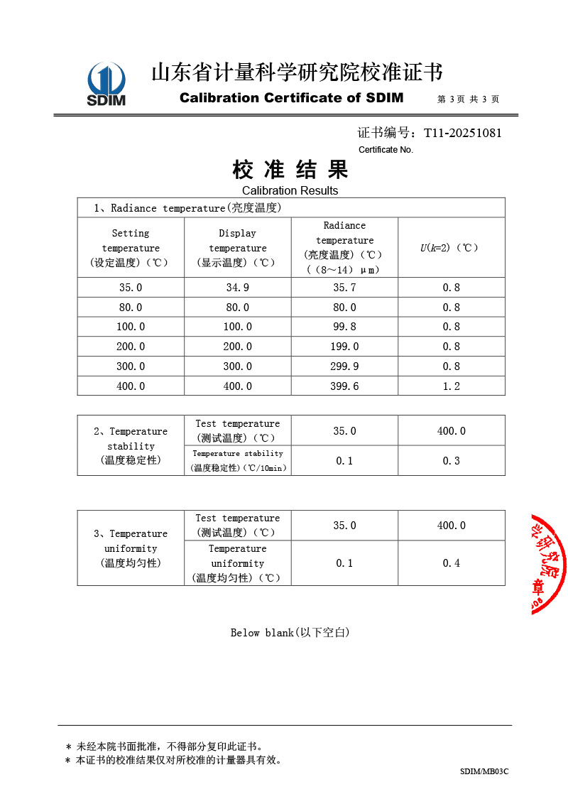 腔式黑體輻射源(室溫+5-400℃)校準(zhǔn)證書 2025-7-29 本文被閱讀 1693 次