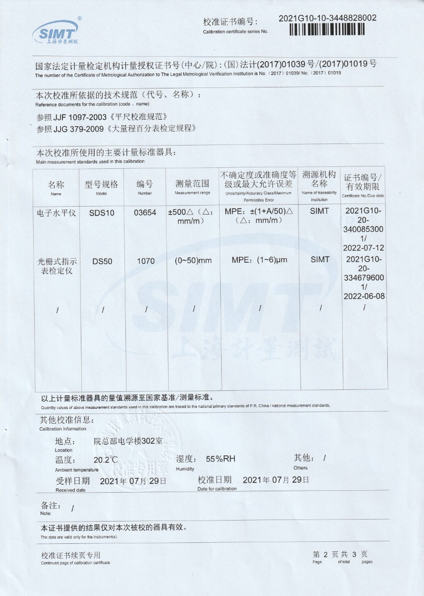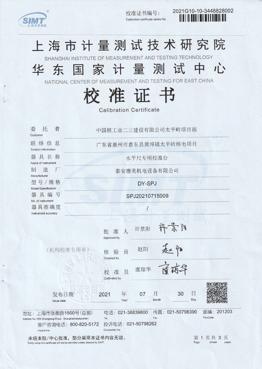 上一條:中國(guó)核工業(yè)二三建設(shè)有限公司太平嶺項(xiàng)目部-標(biāo)準(zhǔn)鉑電阻溫度計(jì) | 下一條:超低溫面源黑體爐(-40-80℃)校準(zhǔn)證書 |