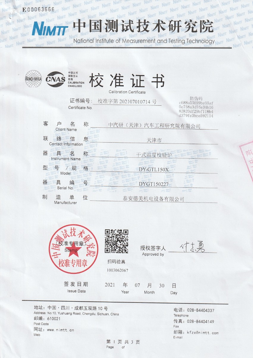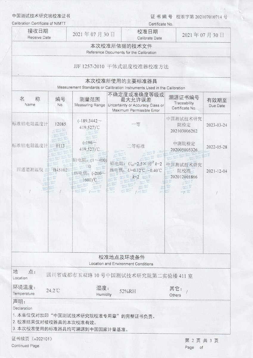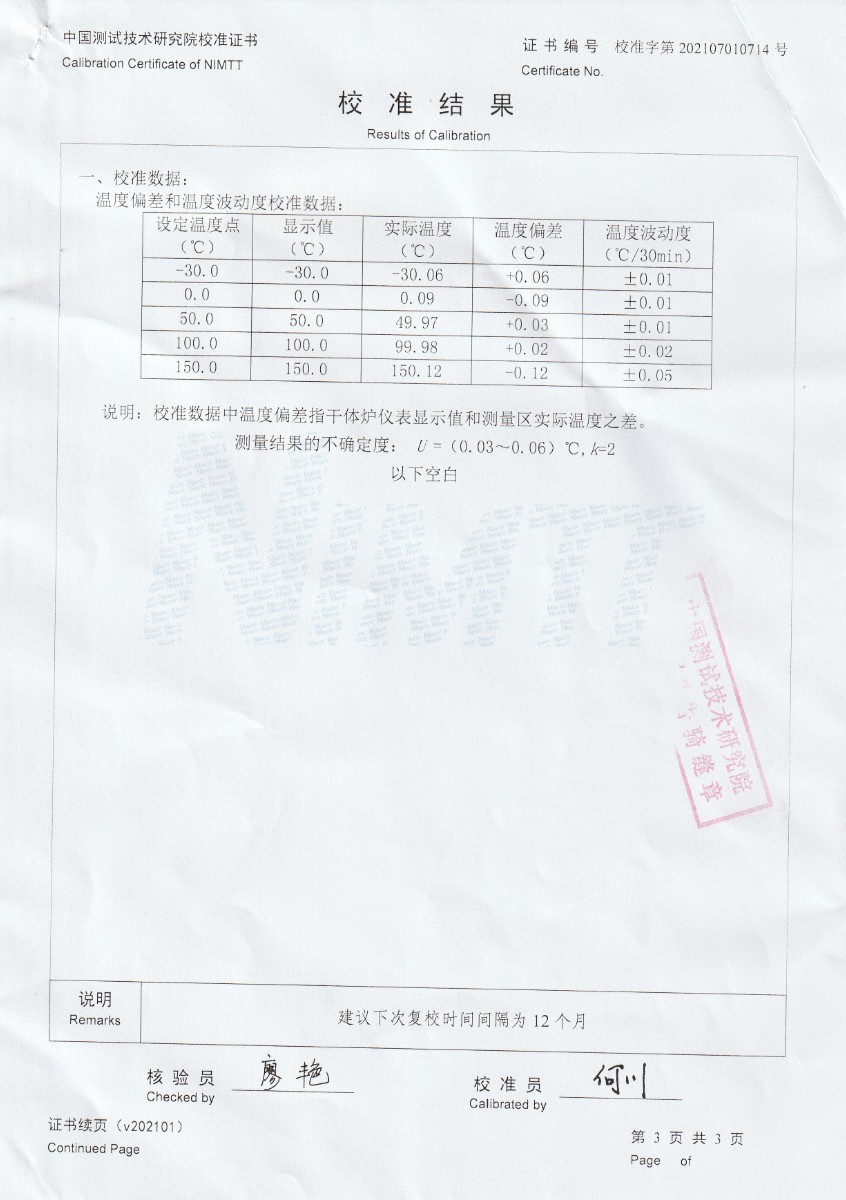 上一條:深圳村田科技有限公司-溫濕度檢定箱 | 下一條:超低溫面源黑體爐(-40-80℃)校準(zhǔn)證書 |