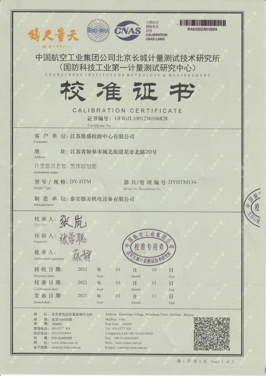 江蘇鼎盛檢測有限公司 黑體輻射源 2023-1-28 本文被閱讀 11621 次