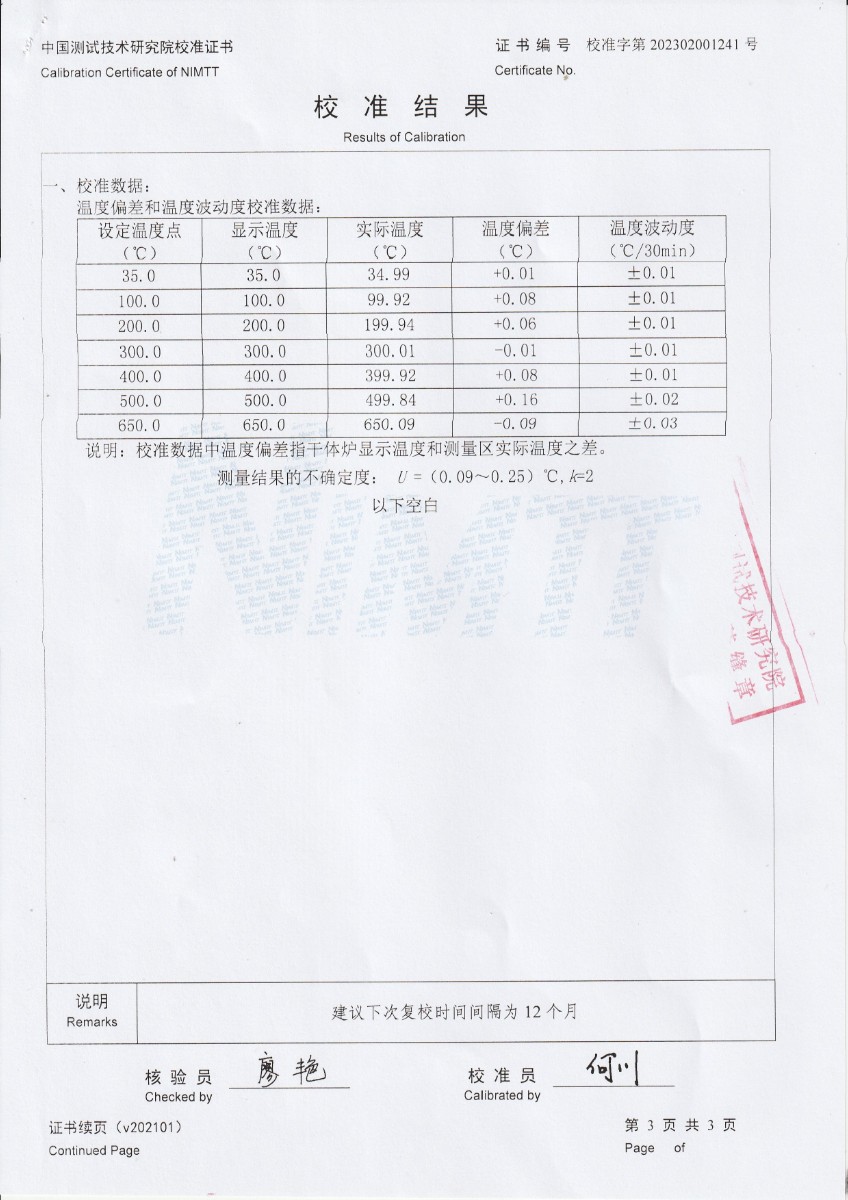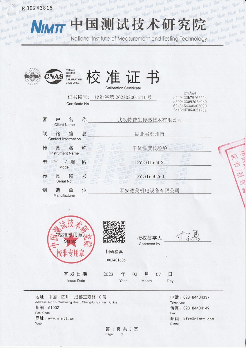 上一條:泰安德美機(jī)電設(shè)備有限公司 TRT4.82 精密輻射溫度計(jì) 校準(zhǔn)證書 | 下一條:超低溫面源黑體爐(-40-80℃)校準(zhǔn)證書 |