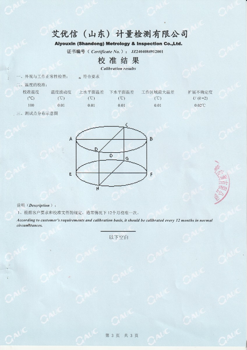 上一條:高精度數(shù)字溫度計(jì)校準(zhǔn)證書(shū) | 下一條:超低溫面源黑體爐(-40-80℃)校準(zhǔn)證書(shū) |