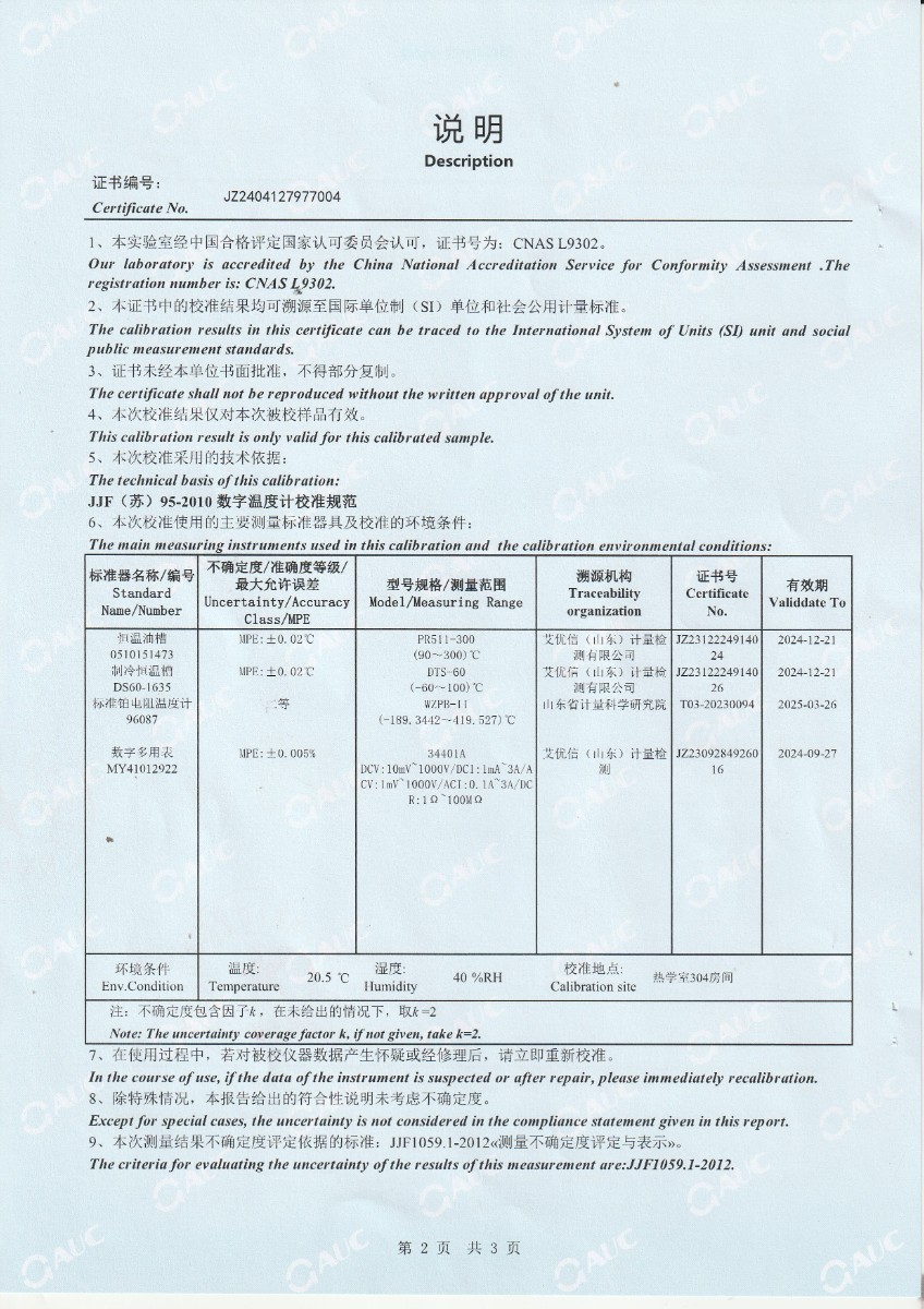 高精度數(shù)字溫度計校準證書 2024-4-13 本文被閱讀 6618 次