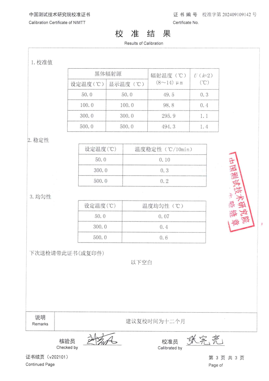 中溫腔式黑體校準(zhǔn)證書(shū)