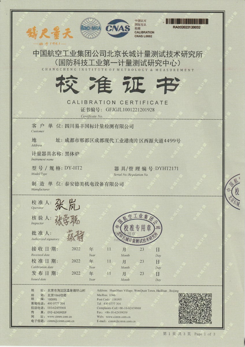 四川易豐國標計量檢測有限公司 黑體爐 2023-1-3 本文被閱讀 11430 次