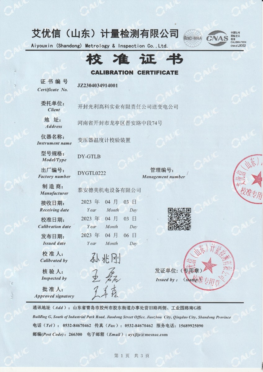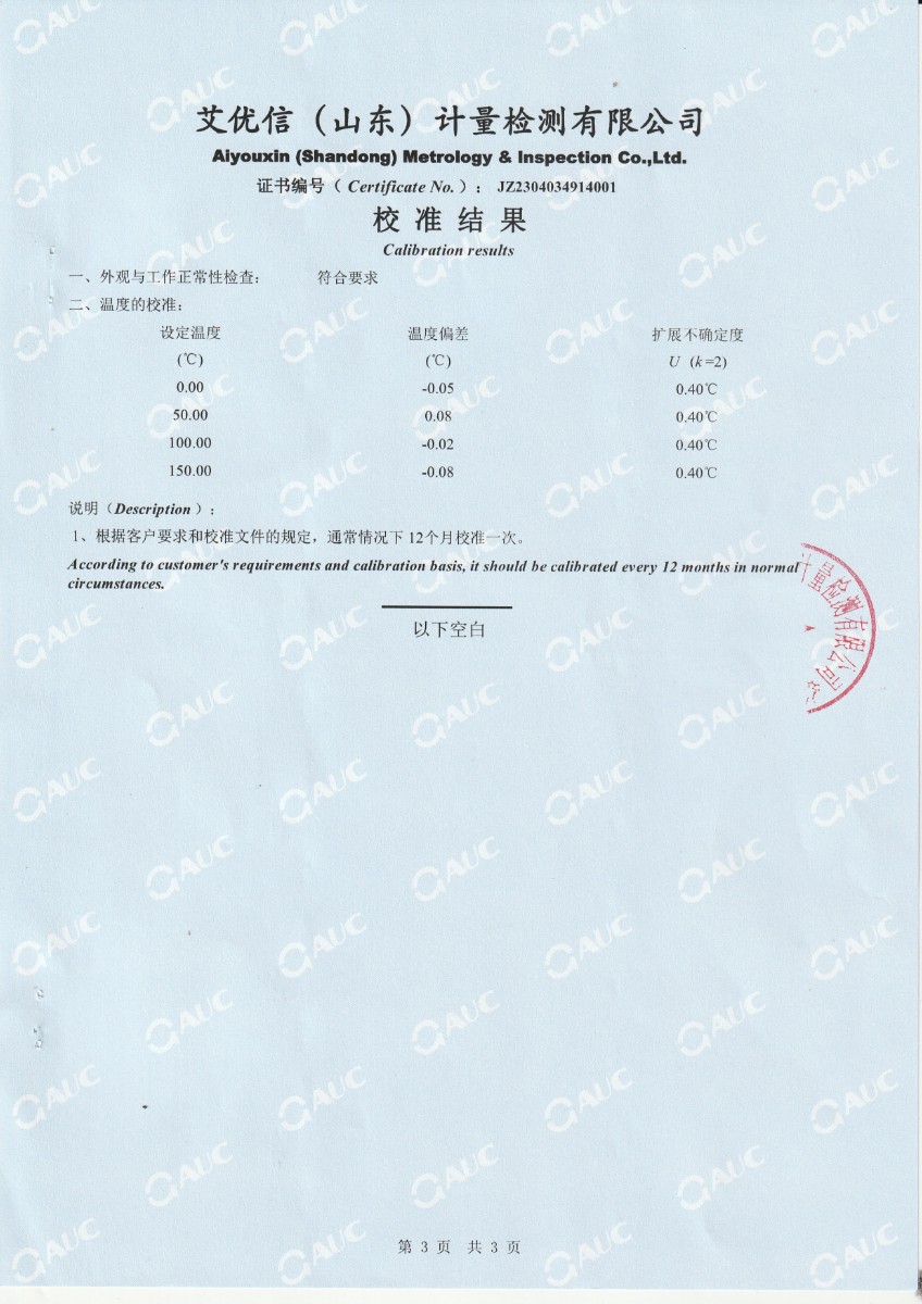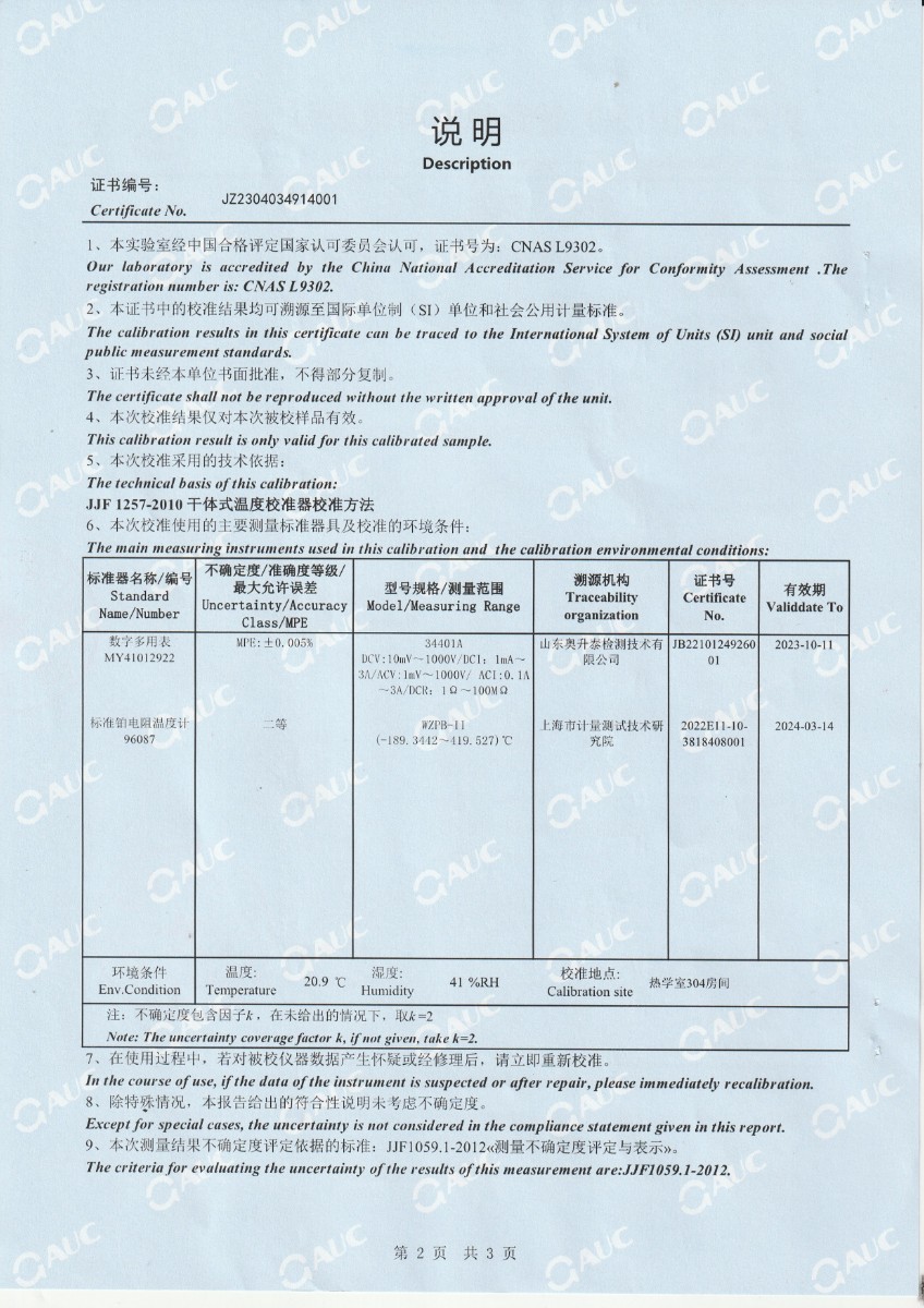 | 上一條:中財(cái)鋰膜(南京)有限公司 中溫干體爐 校準(zhǔn)證書(shū) | 下一條:便攜式干體爐(-30-150℃)校準(zhǔn)證書(shū) |