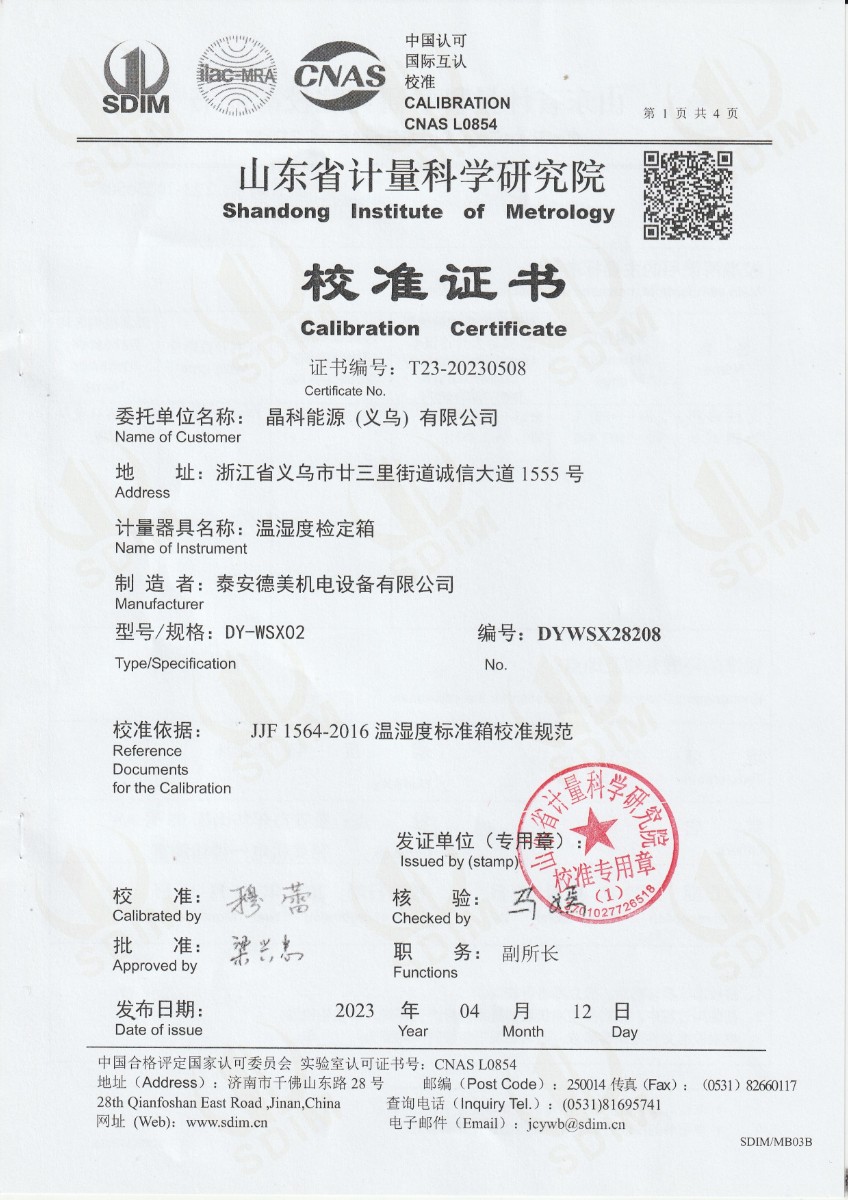 | 上一條:晶科能源(義烏)有限公司 精密露點(diǎn)儀(溫度)校準(zhǔn)證書 | 下一條:便攜式干體爐(-30-150℃)校準(zhǔn)證書 |