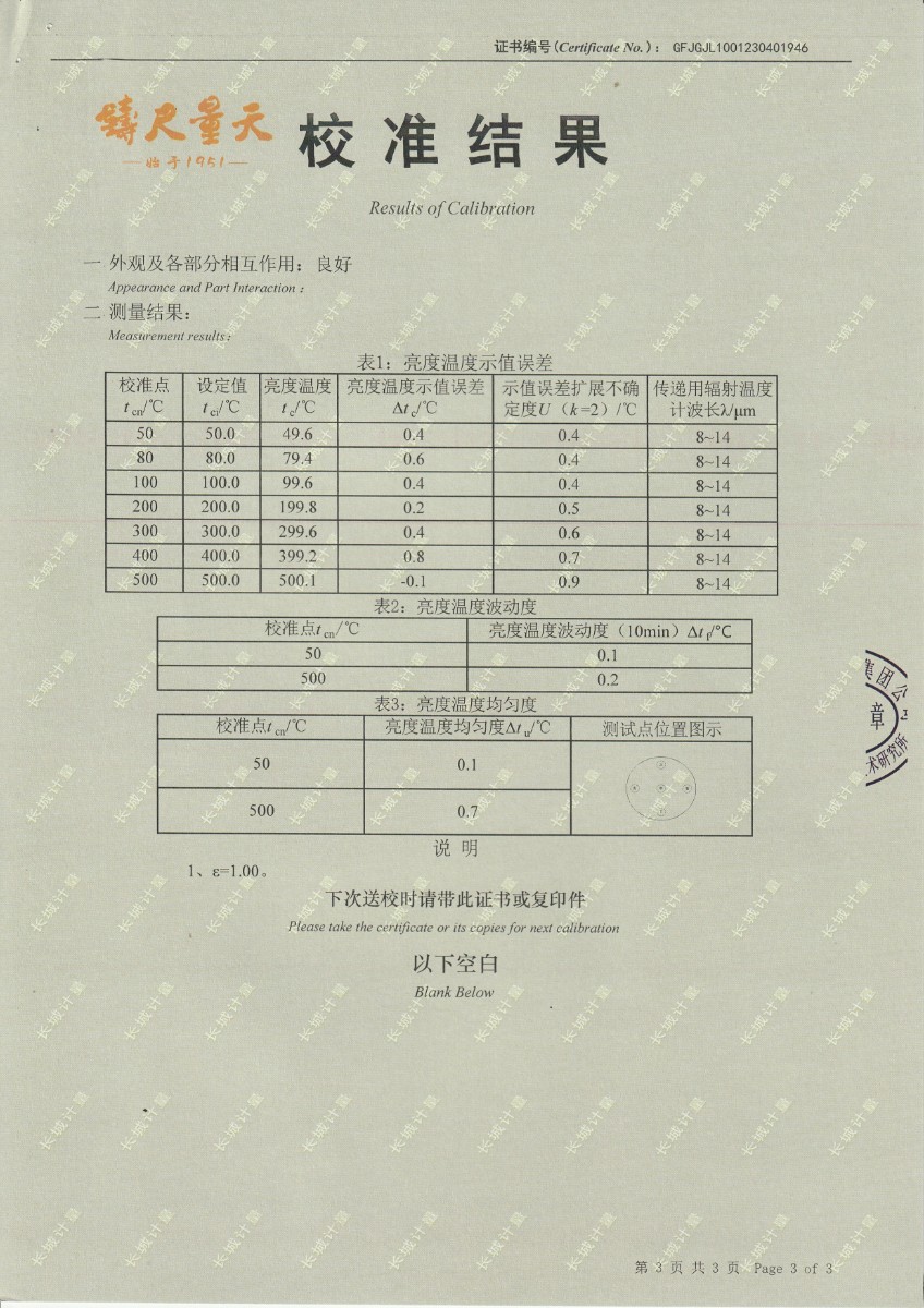 上一條:無錫英菲感知技術(shù)有限公司 高溫黑體 校準(zhǔn)證書(1) | 下一條:便攜式干體爐(-30-150℃)校準(zhǔn)證書 |