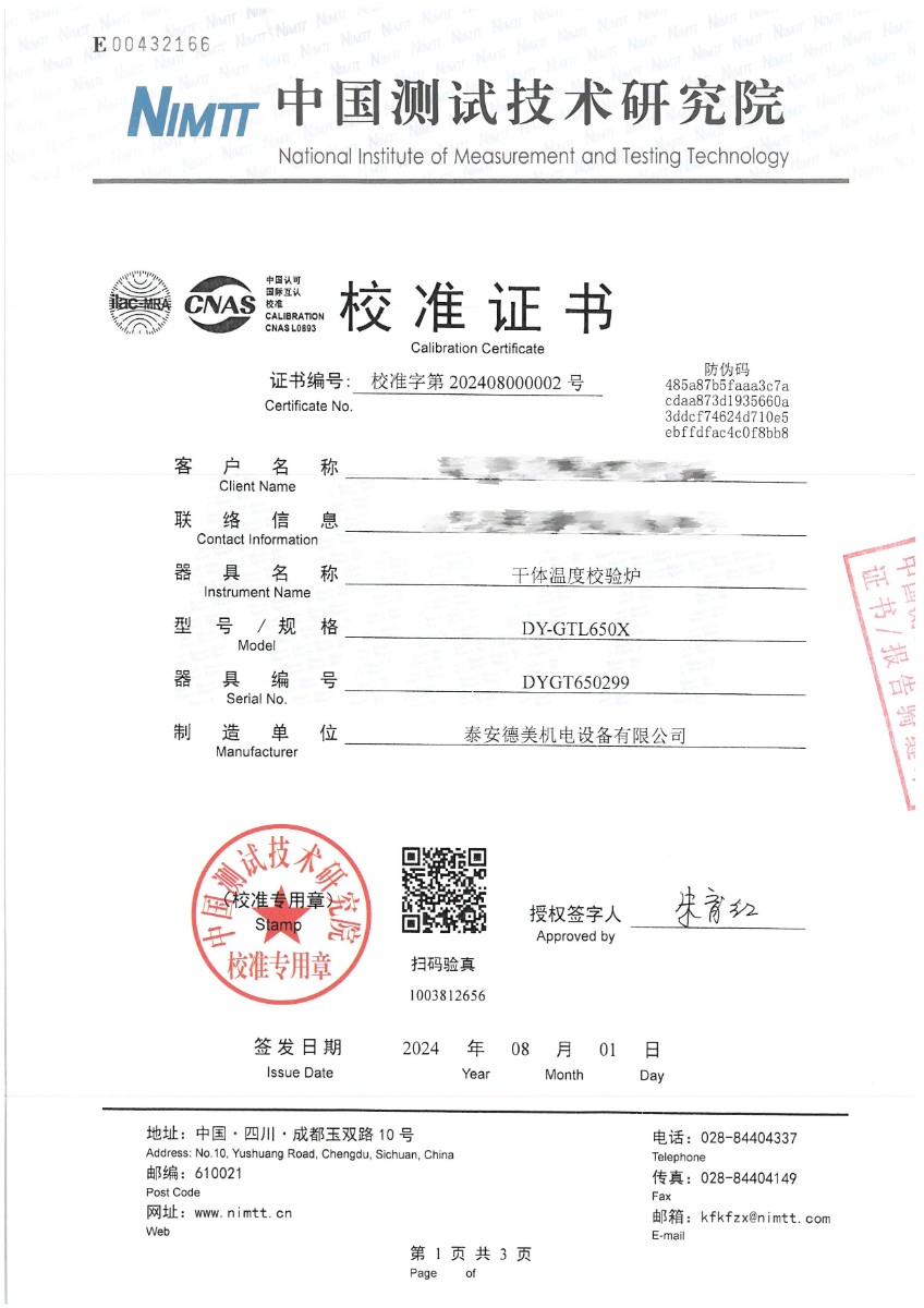 | 上一條:DY-HT1M-200一體面源黑體爐/黑體輻射源 (-10-80℃ 200mm) | 下一條:便攜式干體爐(-30-150℃)校準(zhǔn)證書(shū) |