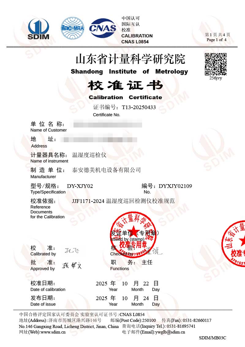 | 上一條:便攜式干體爐(-30-150℃)校準(zhǔn)證書 | 下一條:便攜式溫濕度檢定箱(-10-60℃)校準(zhǔn)證書 |