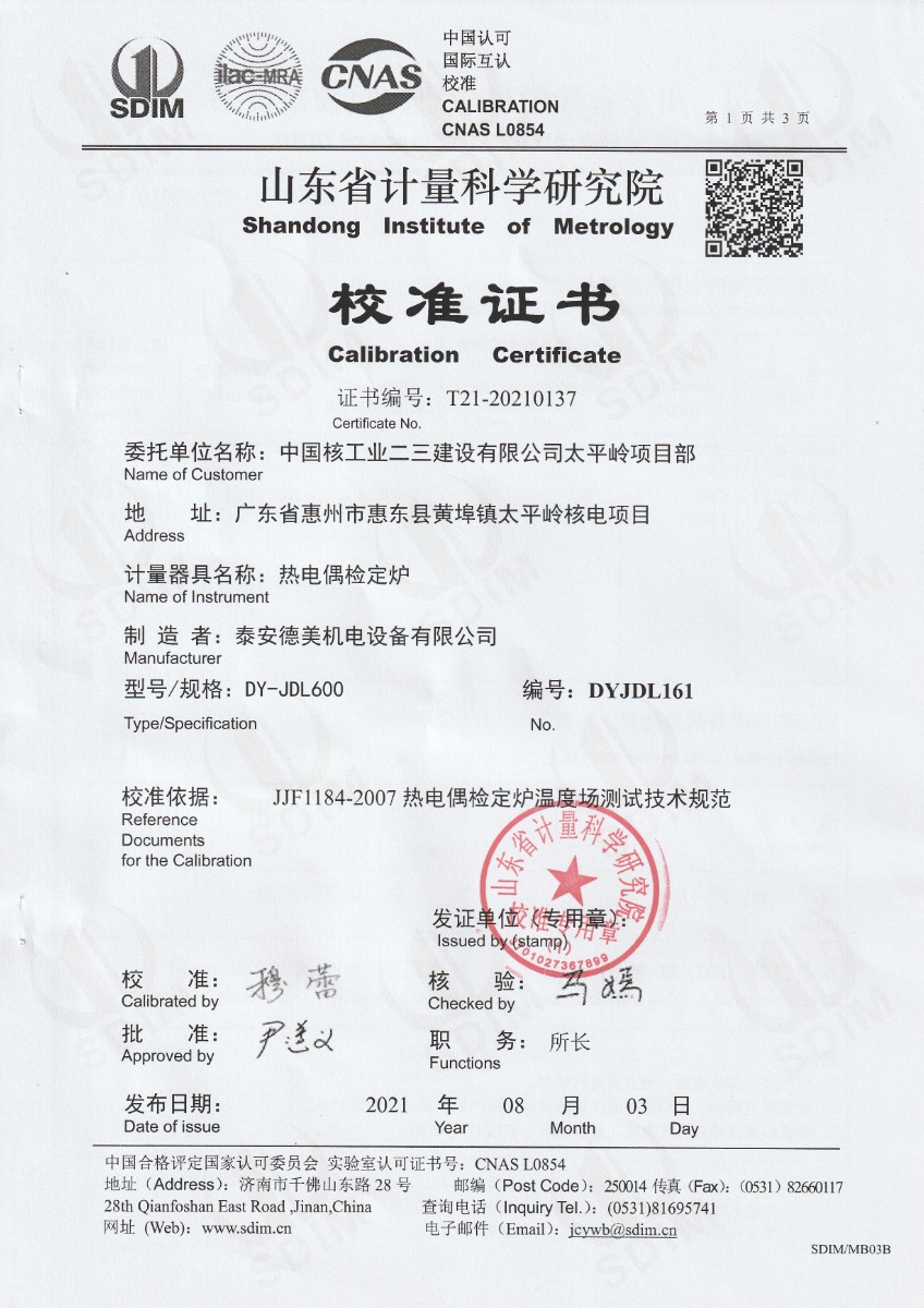 上一條:中國(guó)核工業(yè)二三建設(shè)有限公司太平嶺項(xiàng)目部-精密恒溫油槽下一條:超低溫面源黑體爐(-40-80℃)校準(zhǔn)證書(shū)