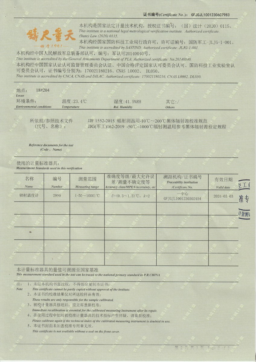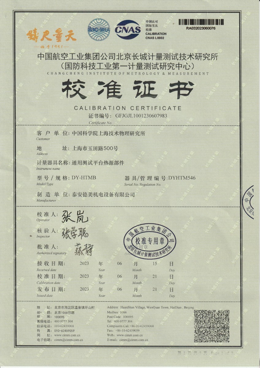 上一條:中國科學(xué)院上海技術(shù)物理研究所-通用測試平臺(tái)熱源部件(DYHTM545) | 下一條:便攜式干體爐(-30-150℃)校準(zhǔn)證書 |
