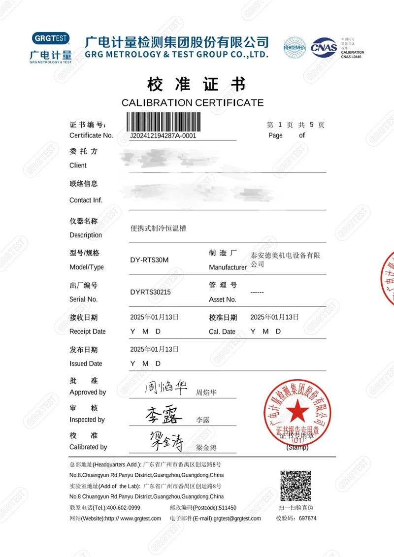 上一條:便攜式制冷恒溫槽(-30-105℃)校準(zhǔn)證書 | 下一條:超低溫面源黑體爐(-40-80℃)校準(zhǔn)證書 |