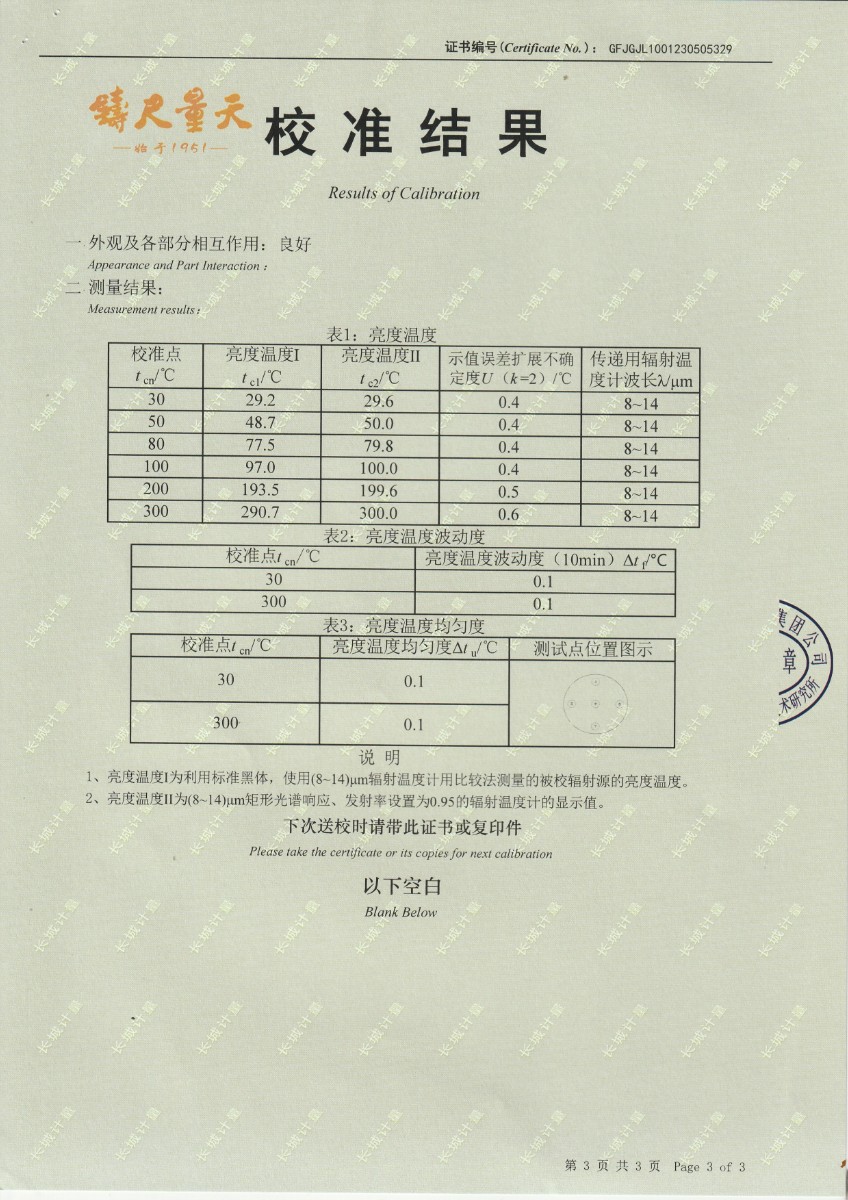 | 上一條:淮安捷泰新能源科技有限公司 黑體輻射源 校準(zhǔn)證書(shū) | 下一條:DY-HT2MF-800大面源黑體爐 |