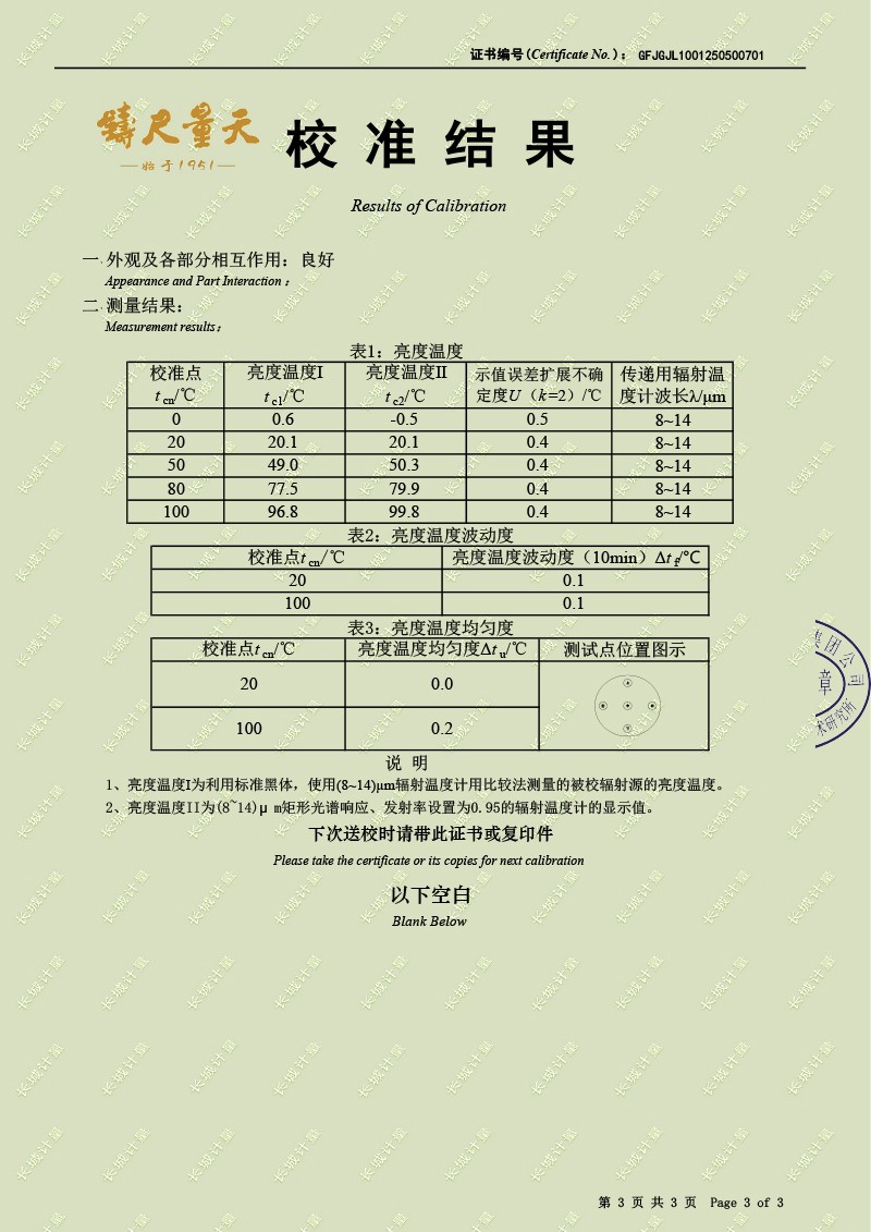 上一條:熱工自動檢定系統(tǒng)校準(zhǔn)證書 | 下一條:超低溫面源黑體爐(-40-80℃)校準(zhǔn)證書 |