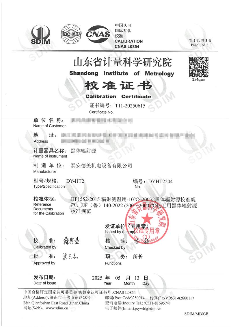 黑體爐(50~400℃)校準證書 2025-5-16 本文被閱讀 2721 次