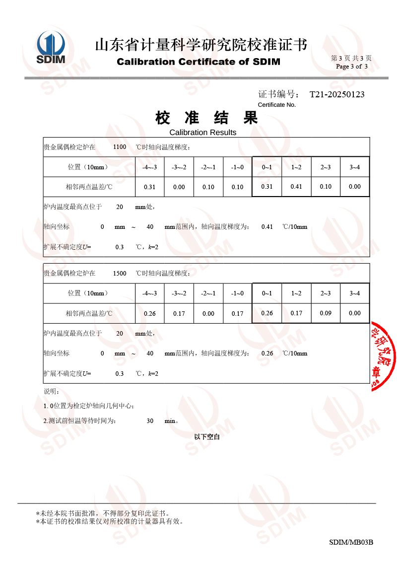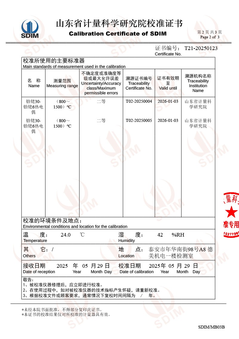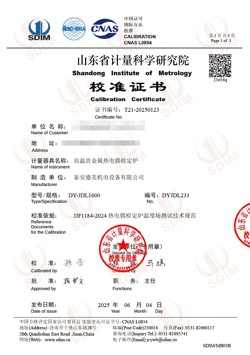 高溫貴金屬熱電偶檢定爐(800-1600℃)校準證書 2025-6-5 本文被閱讀 2445 次