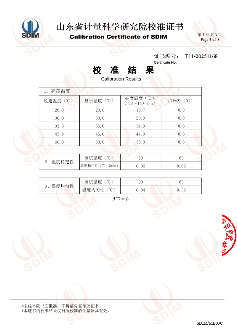 高精度低溫黑體(-10-100℃)校準(zhǔn)證書 2025-8-6 本文被閱讀 1563 次