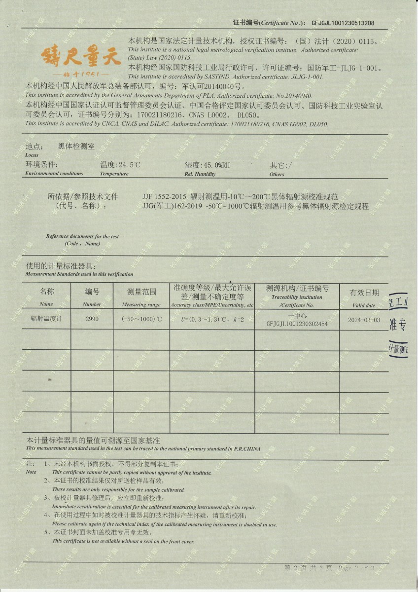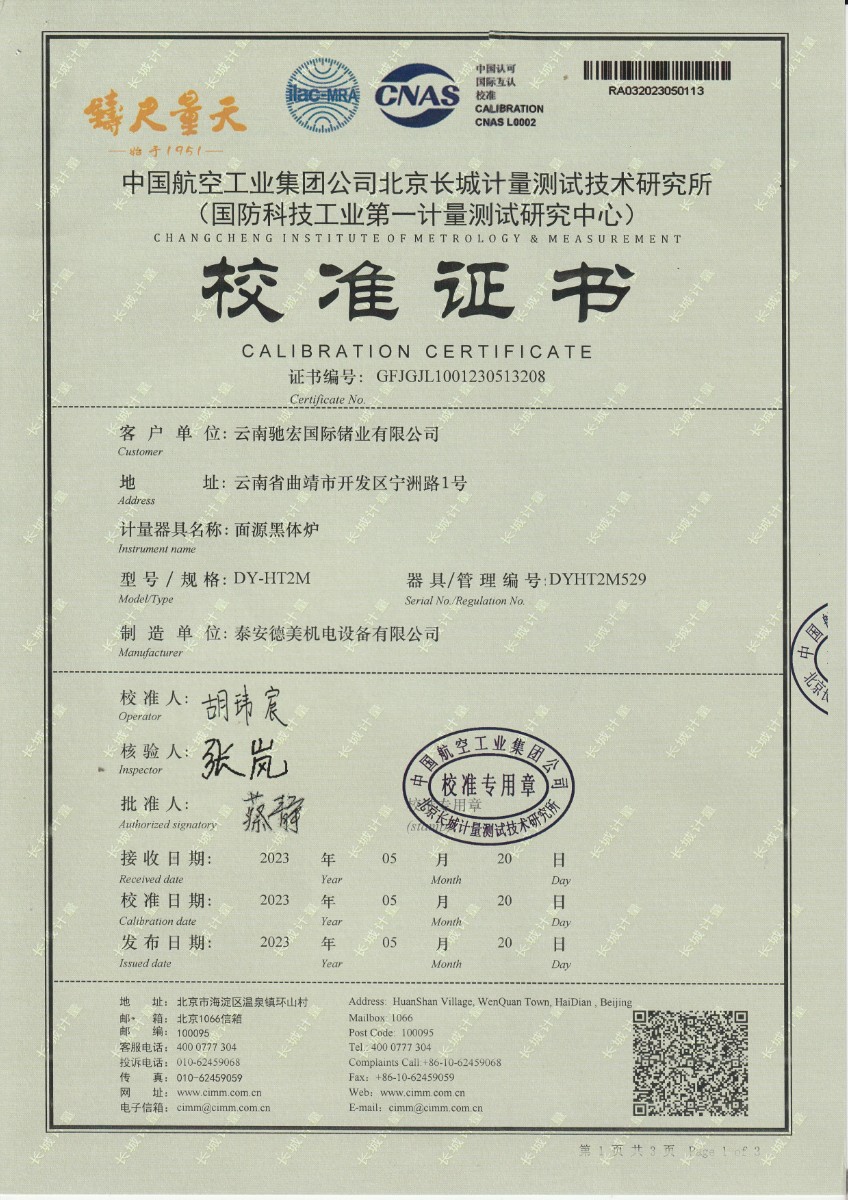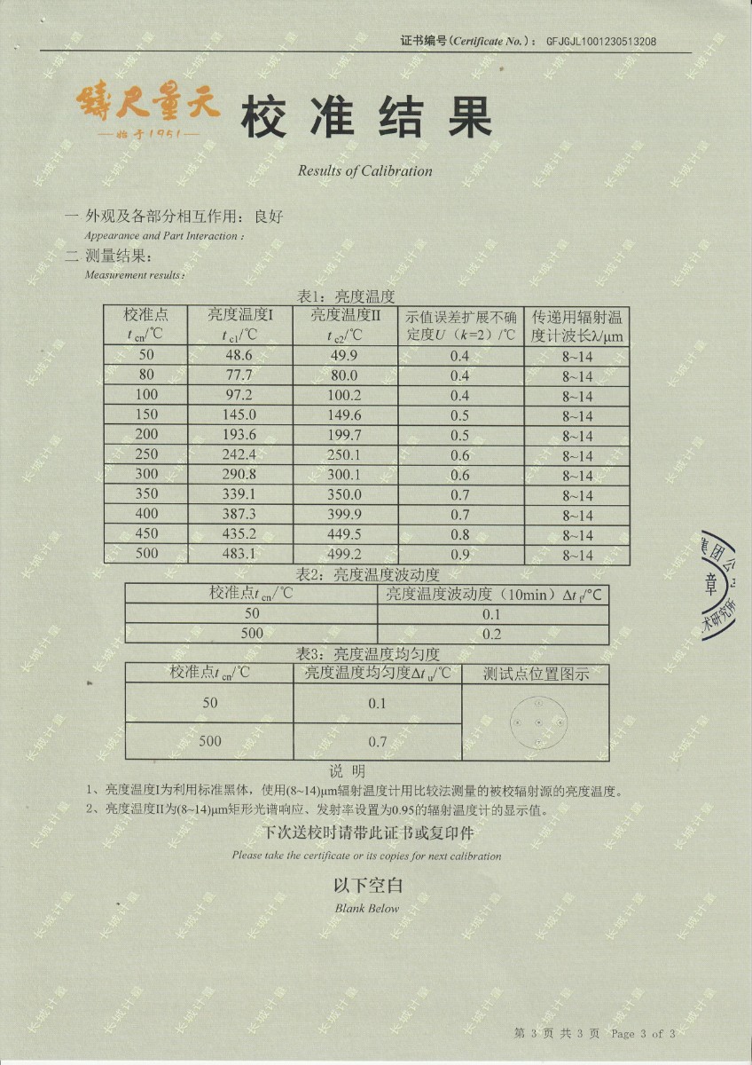 上一條:方圓檢測認(rèn)證集團(tuán)有限公司 中溫黑體校準(zhǔn)證書 | 下一條:超低溫面源黑體爐(-40-80℃)校準(zhǔn)證書 |