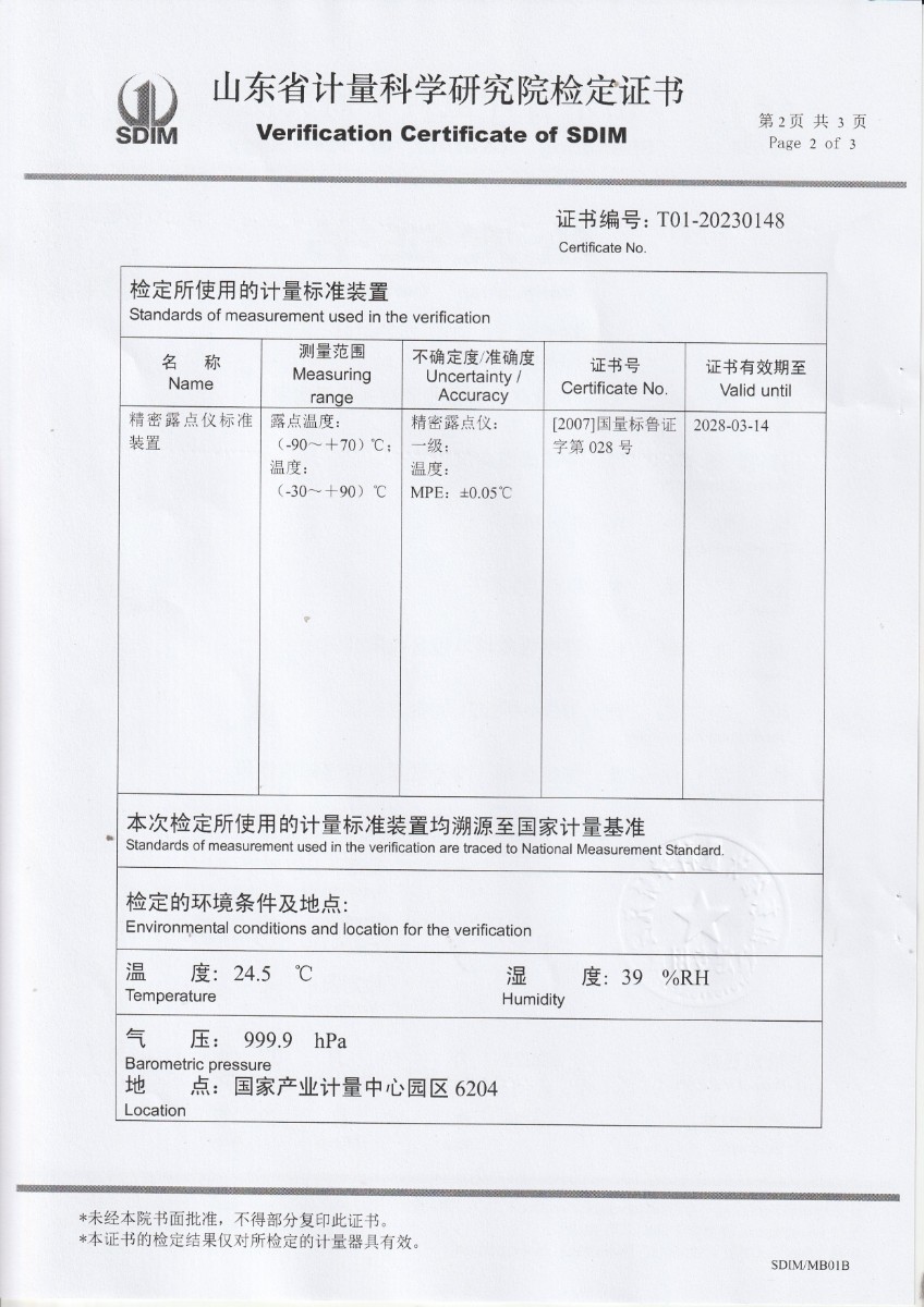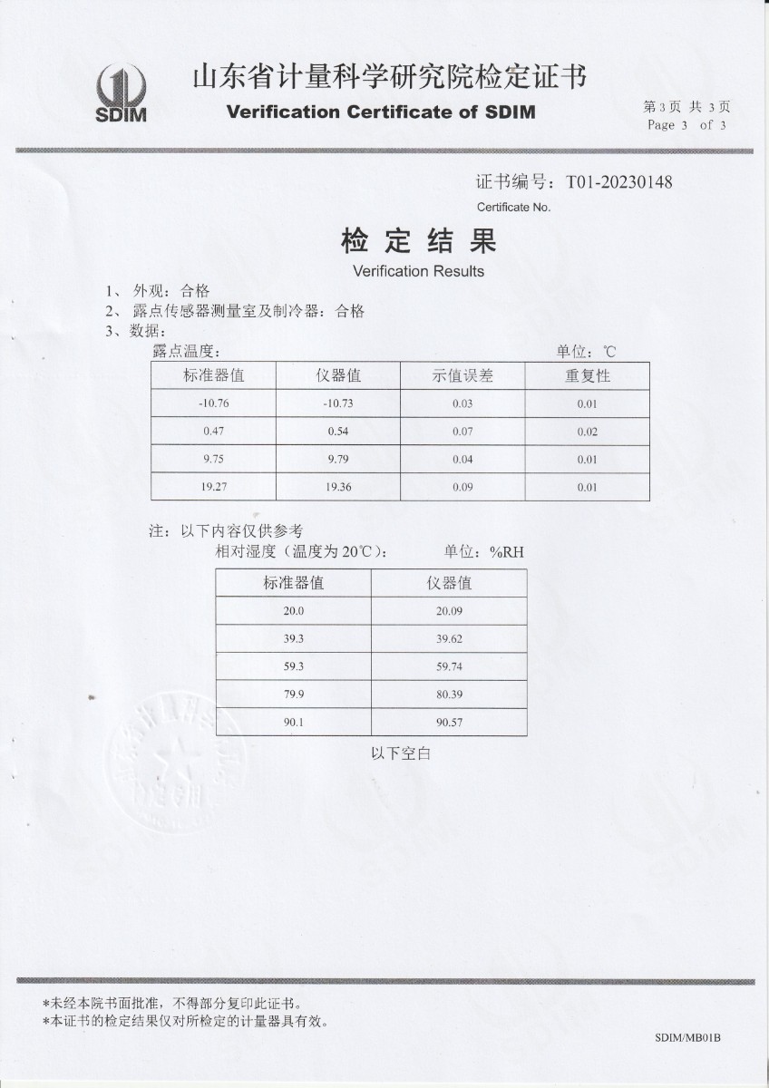 冷鏡式露點儀檢定證書 2023-11-6 本文被閱讀 8220 次