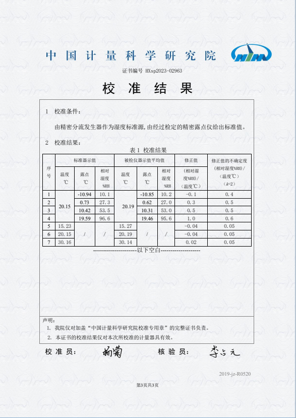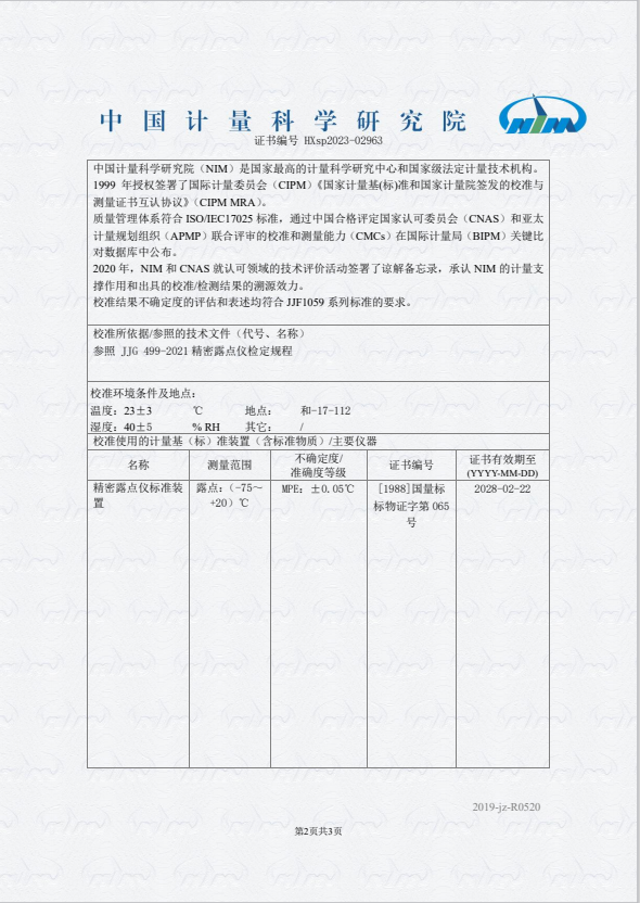 露點儀校準證書 2023-11-9 本文被閱讀 8846 次