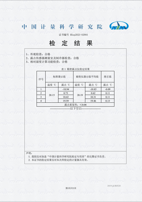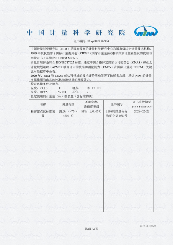 露點(diǎn)儀檢定證書 2023-11-9 本文被閱讀 8405 次